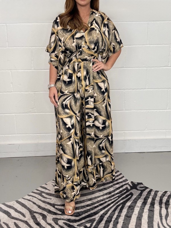 Geometry Multi Print V-neck Wide Leg Jumpsuit