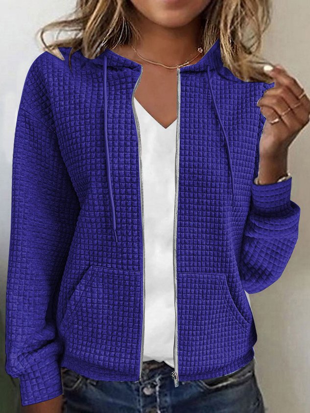 Women's Hoodie Sweatshirt Fleece Active Button Blue Solid Color Street Casual Hoodie Long Sleeve Top Micro-elastic Fall & Winter