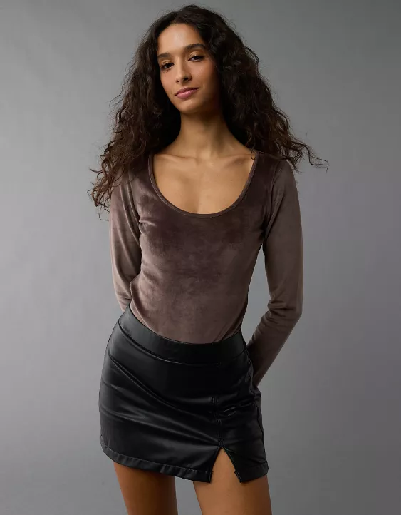 AE Long-Sleeve Scoop Neck Velvet Bodysuit