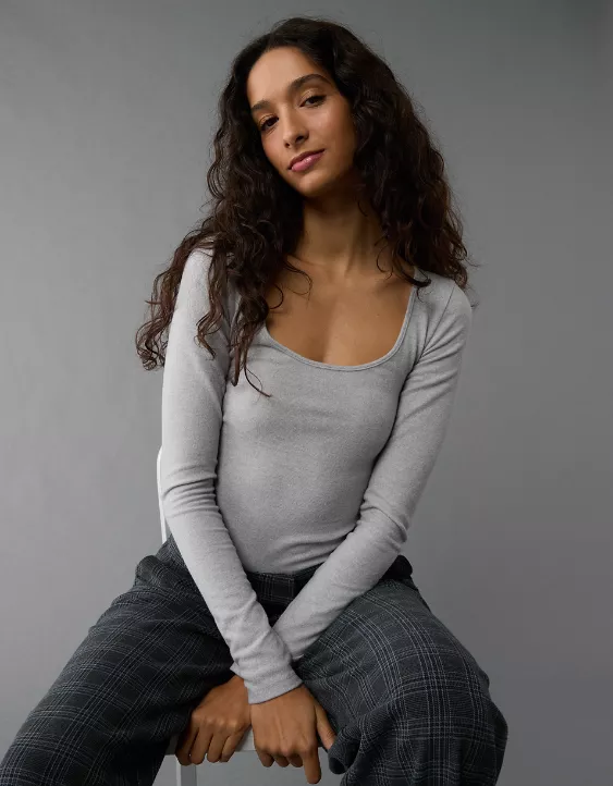 AE Plush Long-Sleeve Scoop Neck Bodysuit