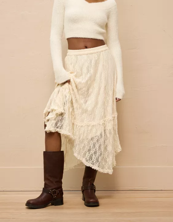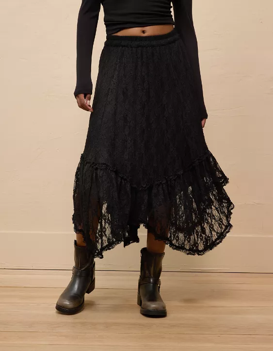AE High-Waisted Handkerchief Hem Lace Maxi Skirt