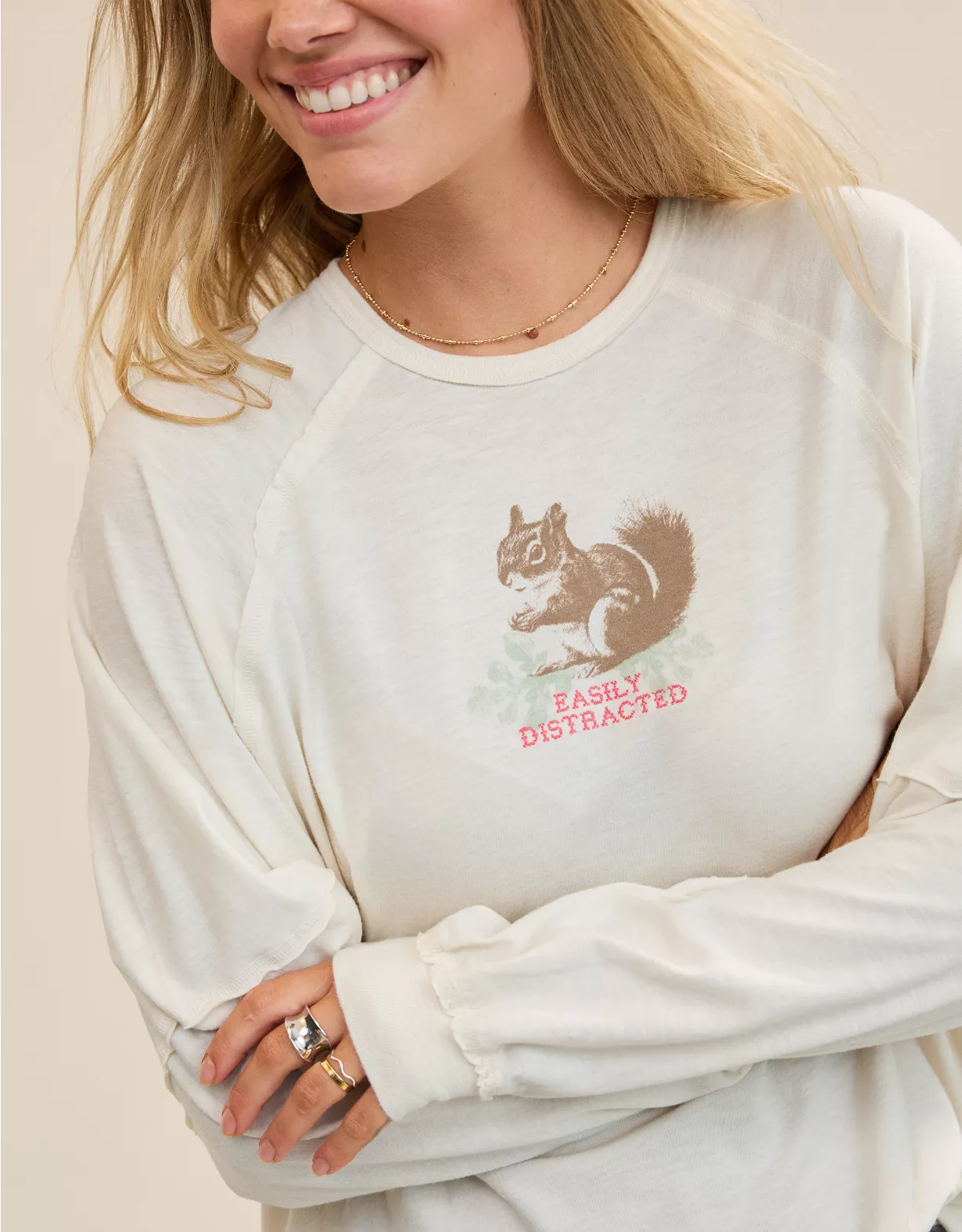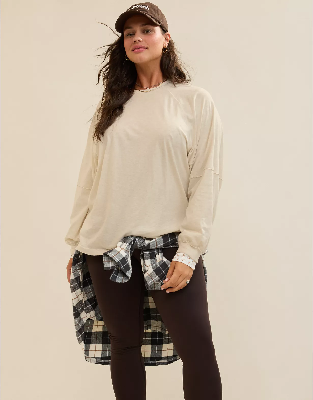 Aerie Cozy Long Sleeve Oversized Boyfriend T-Shirt
