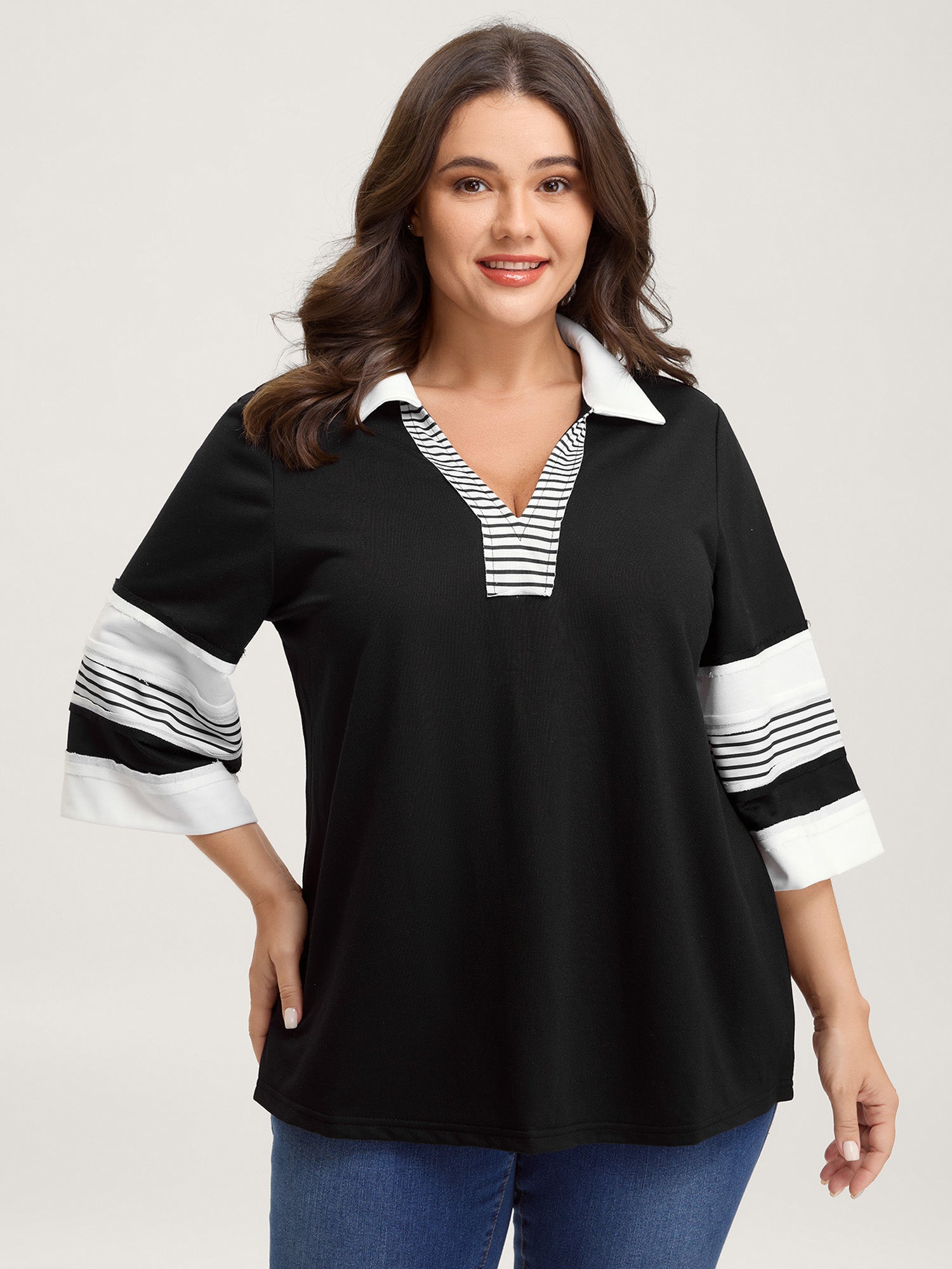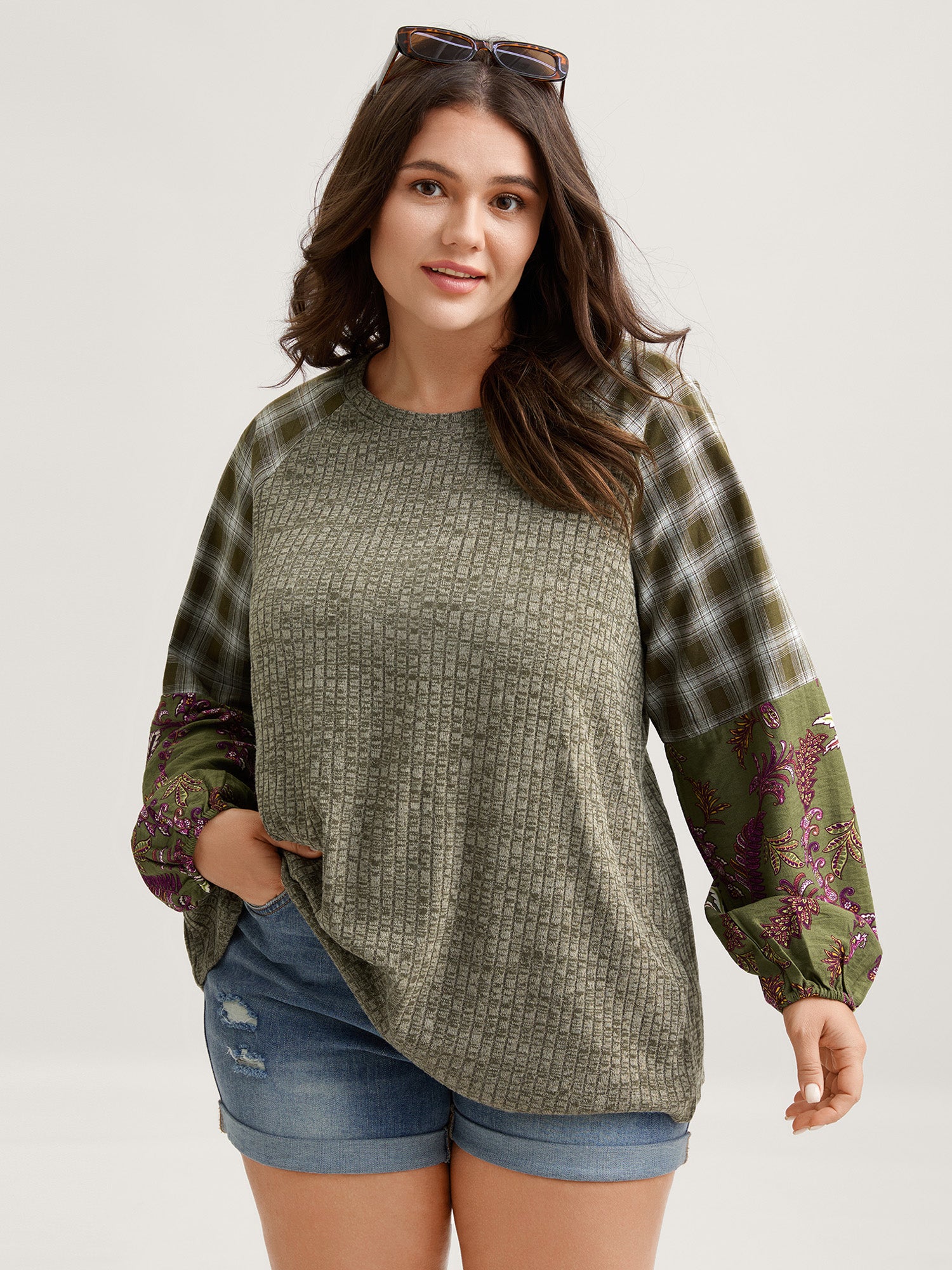 Plaid Sleeve Color Contrast Textured Sweatshirt
