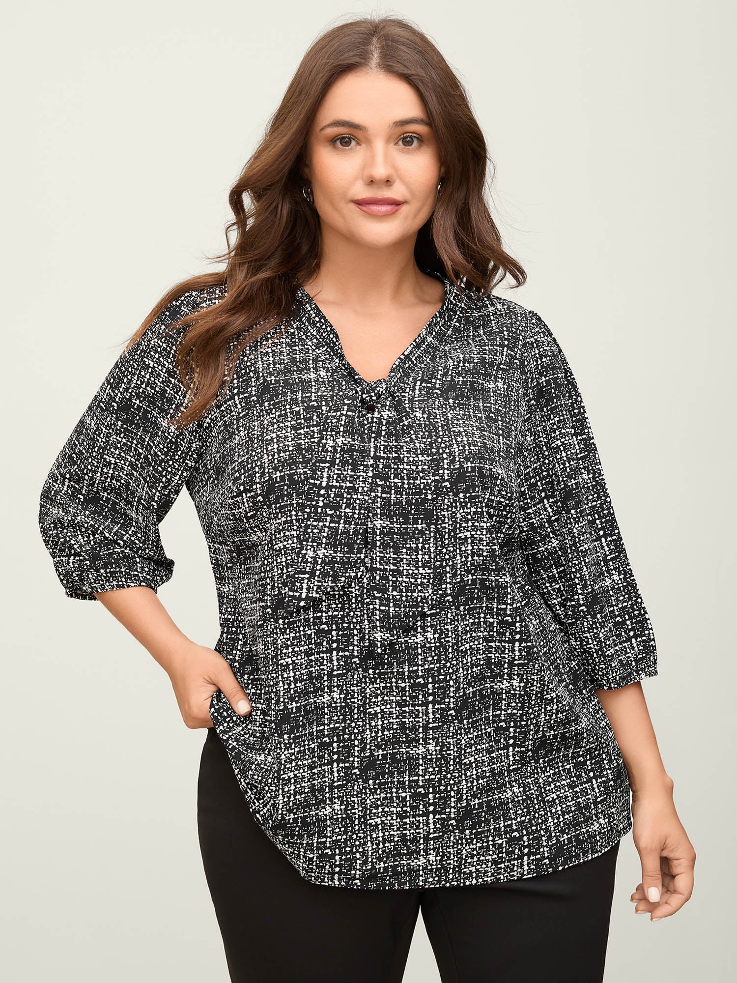 Colorful Boho Neck-Tie Puffy Sleeve Blouse