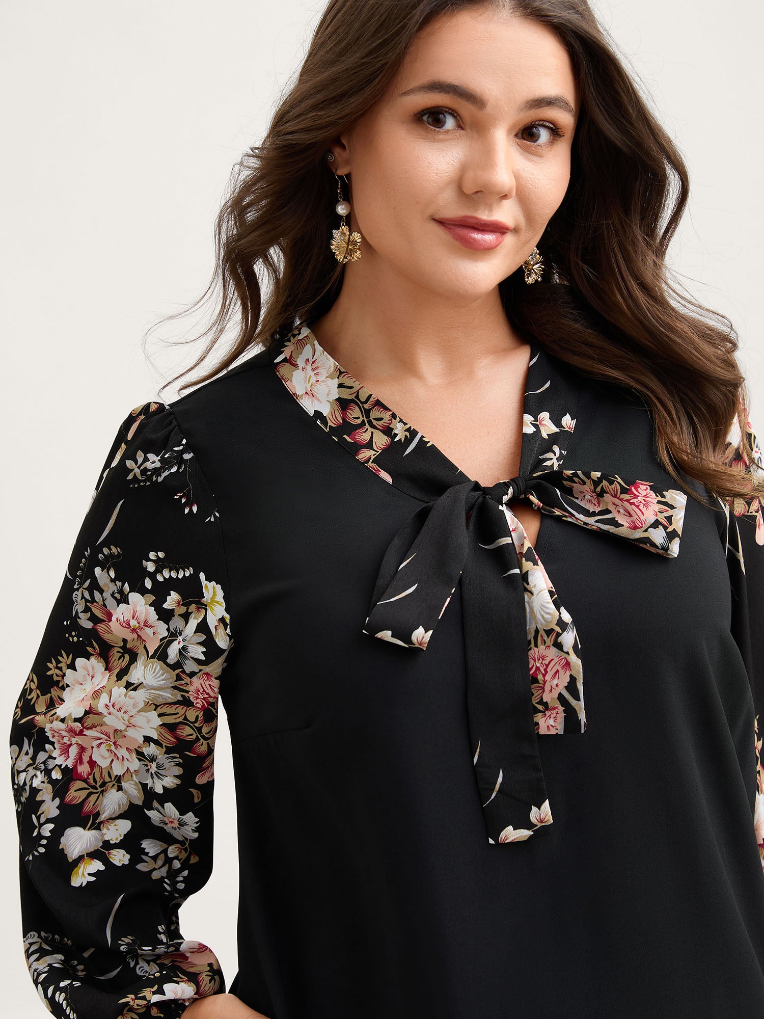 Chiffon Floral Sheer Print Neck-Tie Blouse