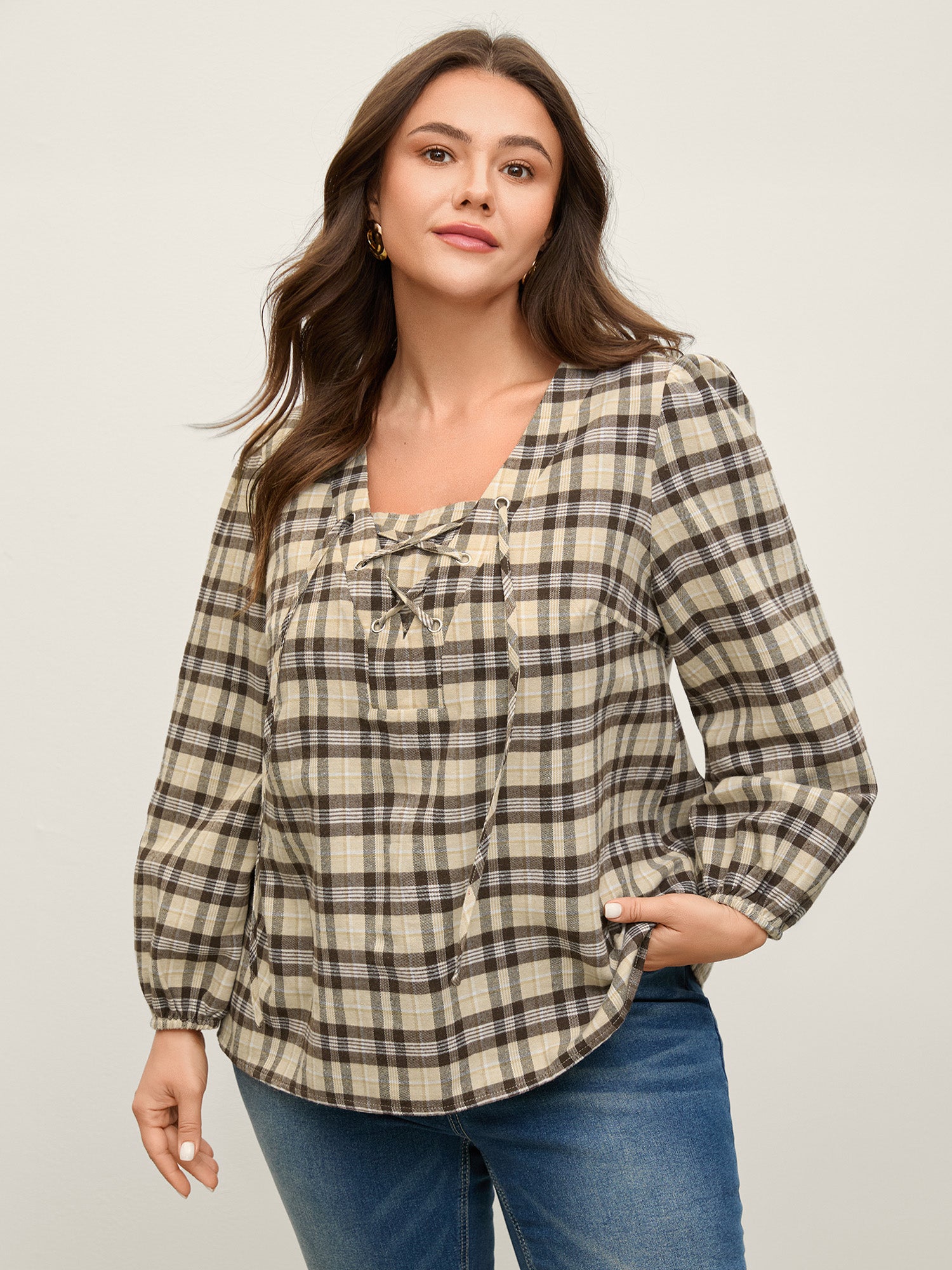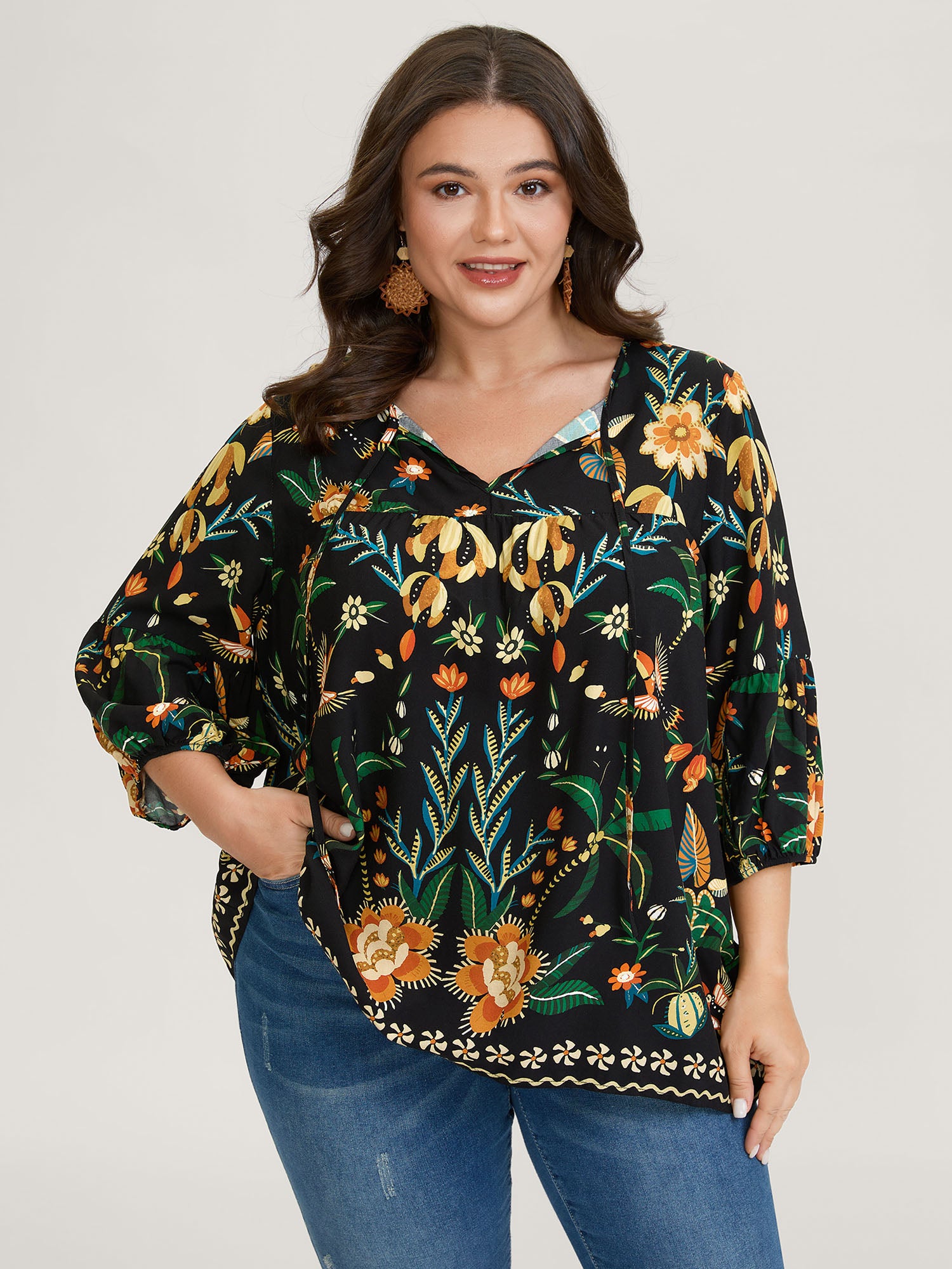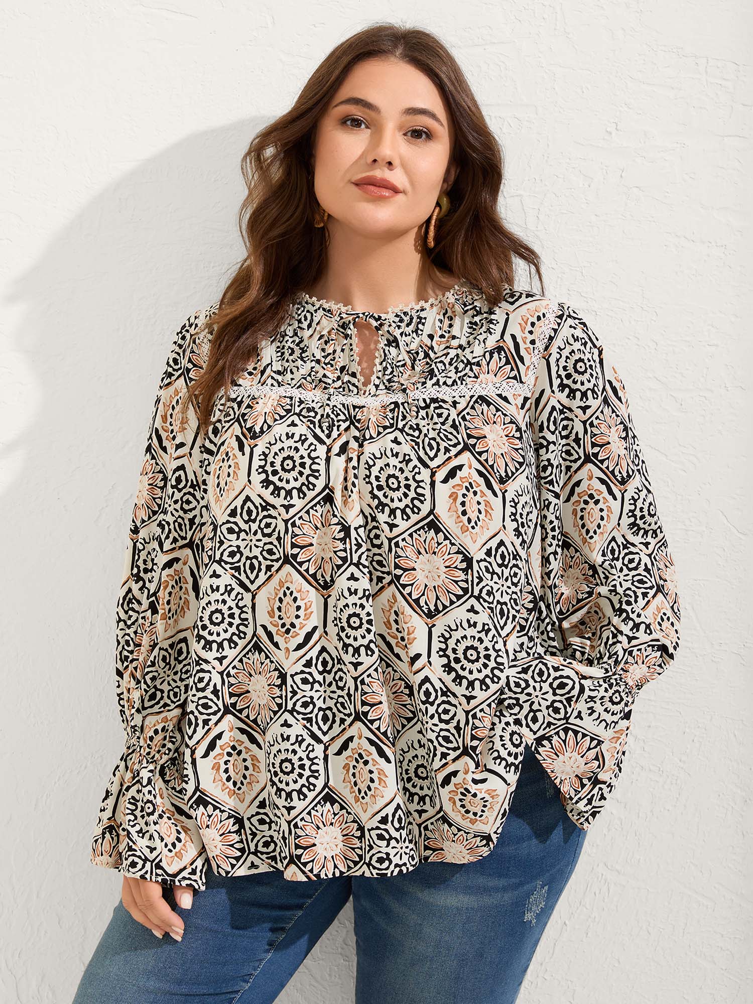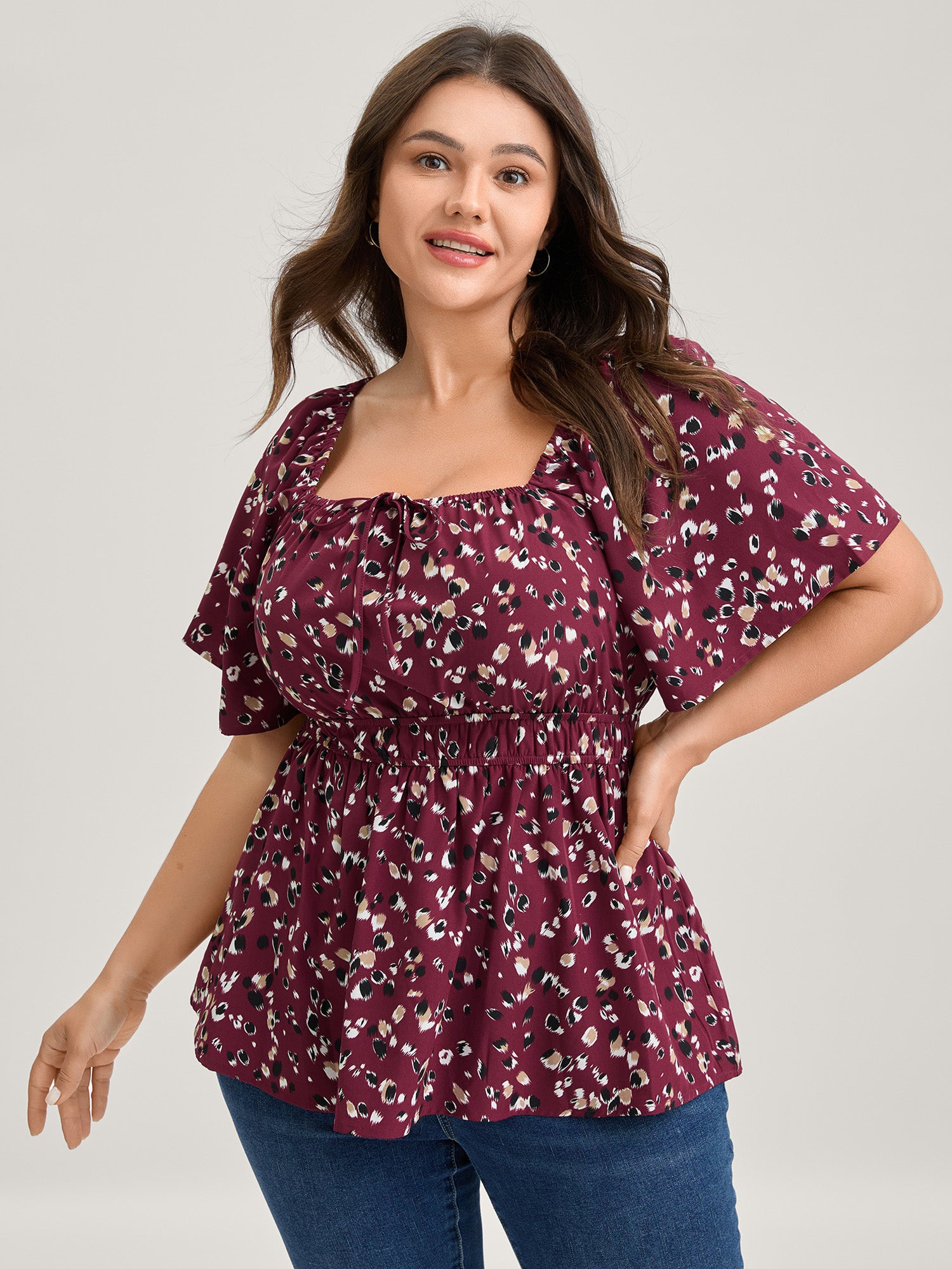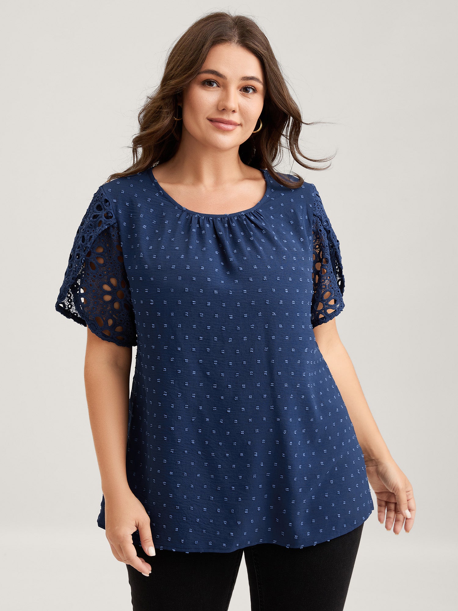 Textured Lace Petal Sleeve Pleated Neck Blouse