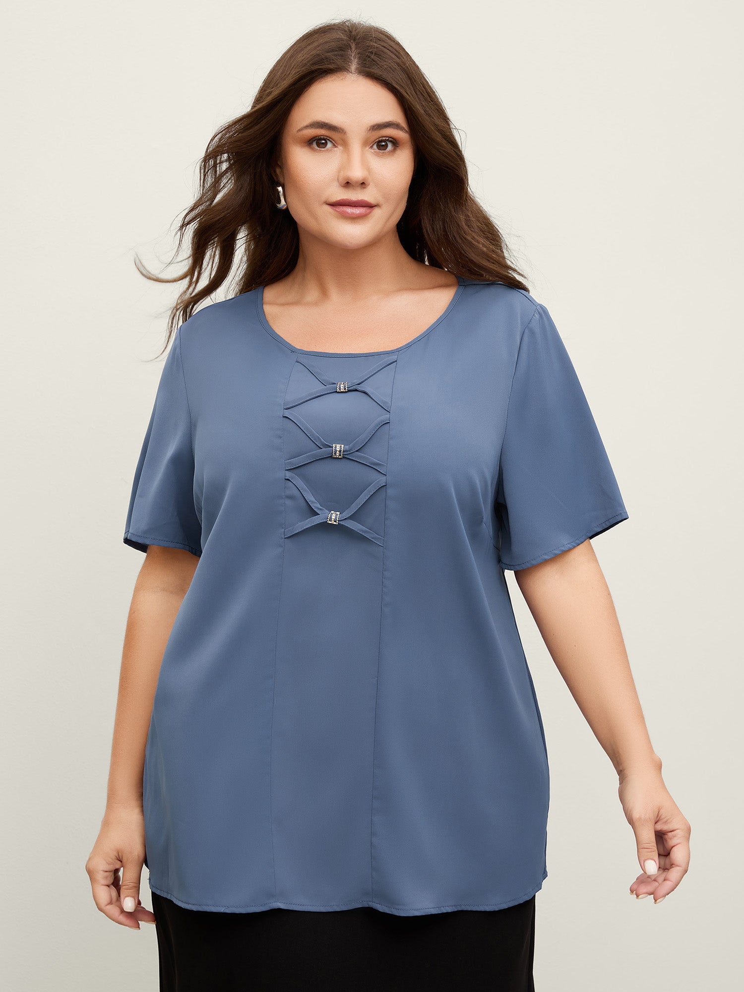 Metal Clasp Neckline Lotus Leaf Sleeve Blouse