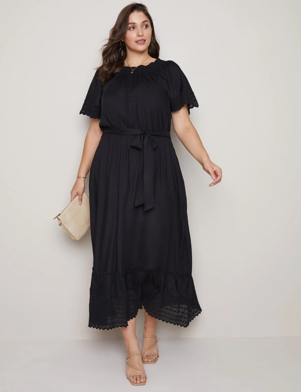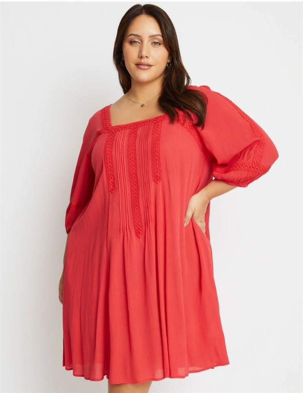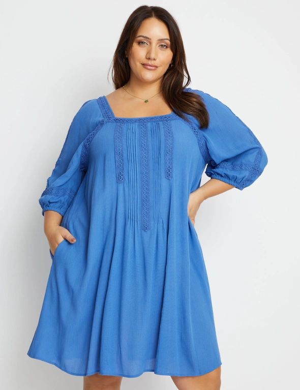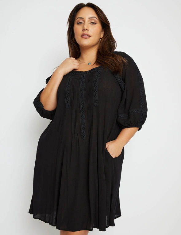 Beme Lace Detail Woven Peasant Swing Dress