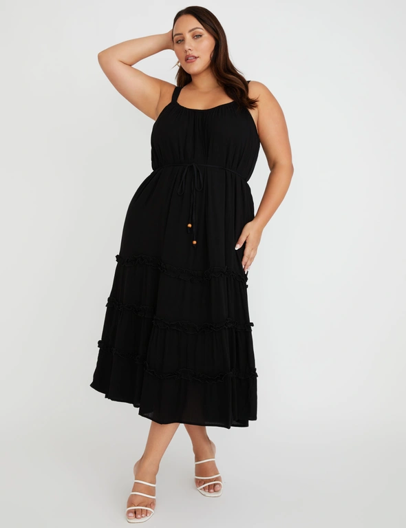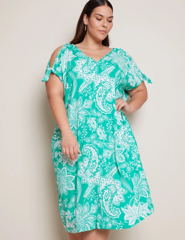 Autograph Cold Shoulder Tie Sleeve Midi Dress