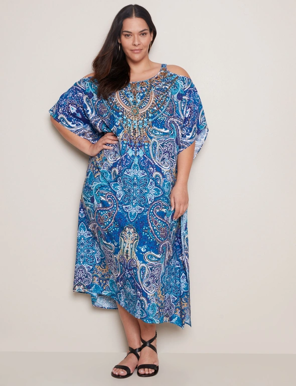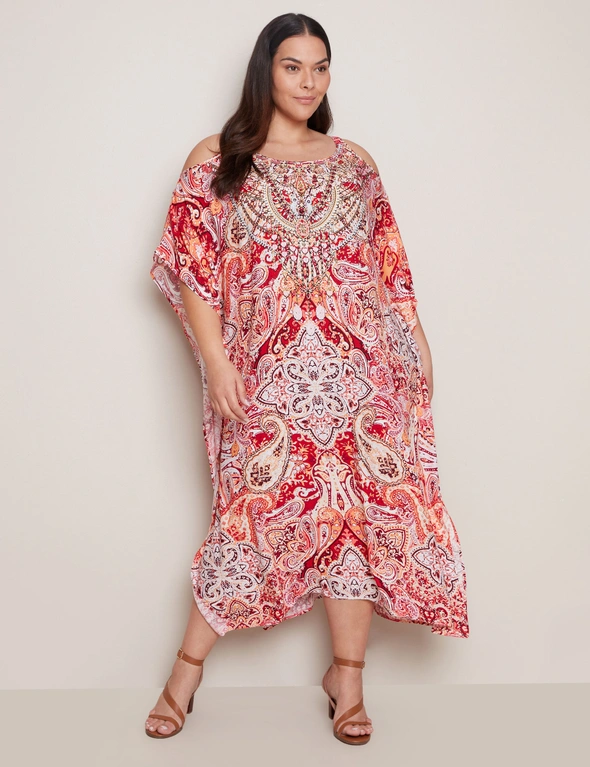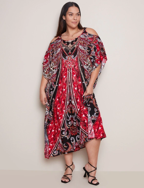 Autograph Cold Shoulder Printed Maxi Kaftan Dress