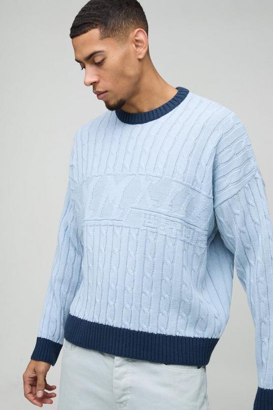 Oversized Boxy Tonal Cable Knitted Jumper