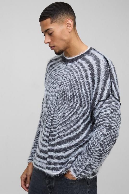 Boxy Fit Fluffy Textured Contrast Knit Jumper