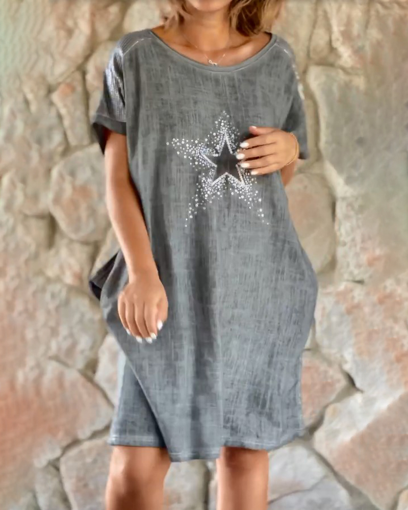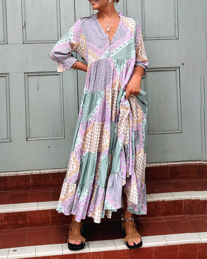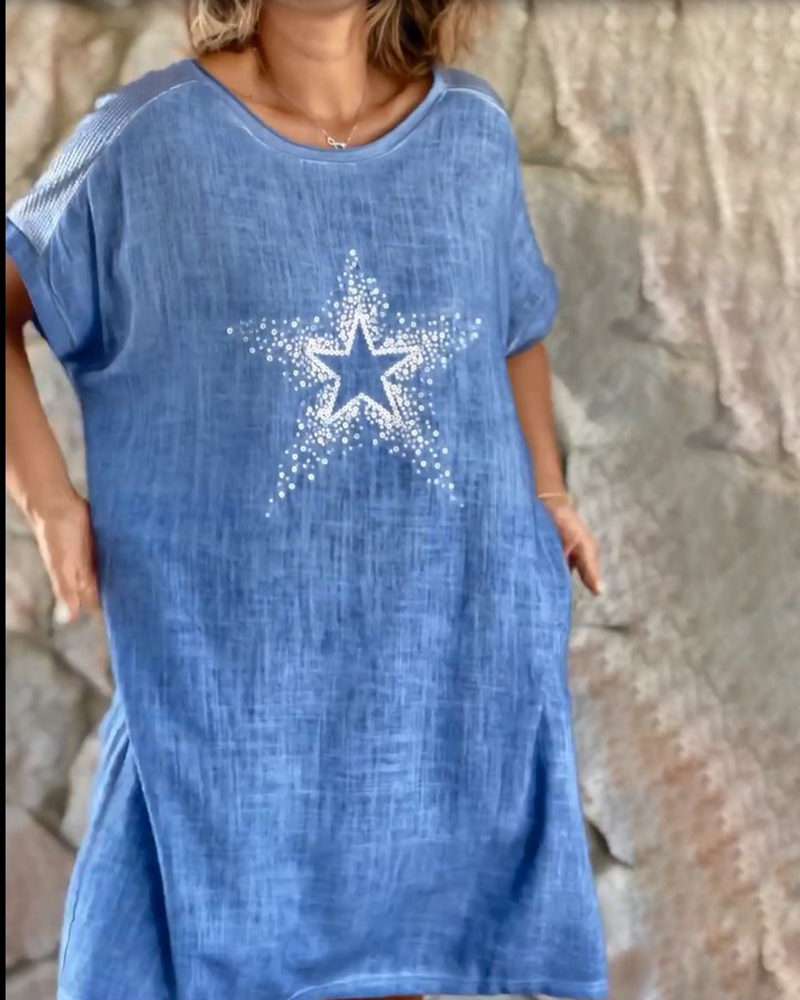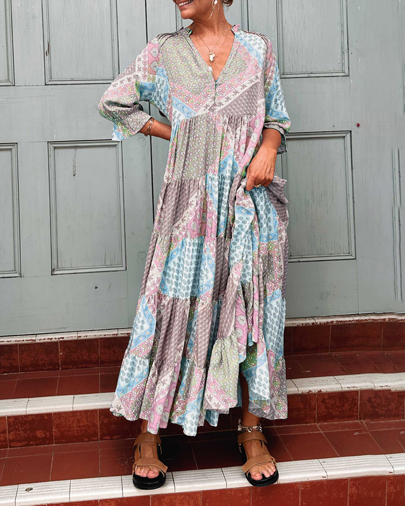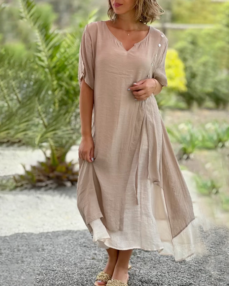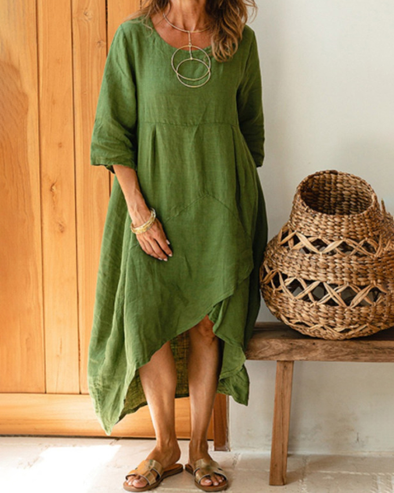 Cotton Linen Three-quarter Sleeve Loose Dress
