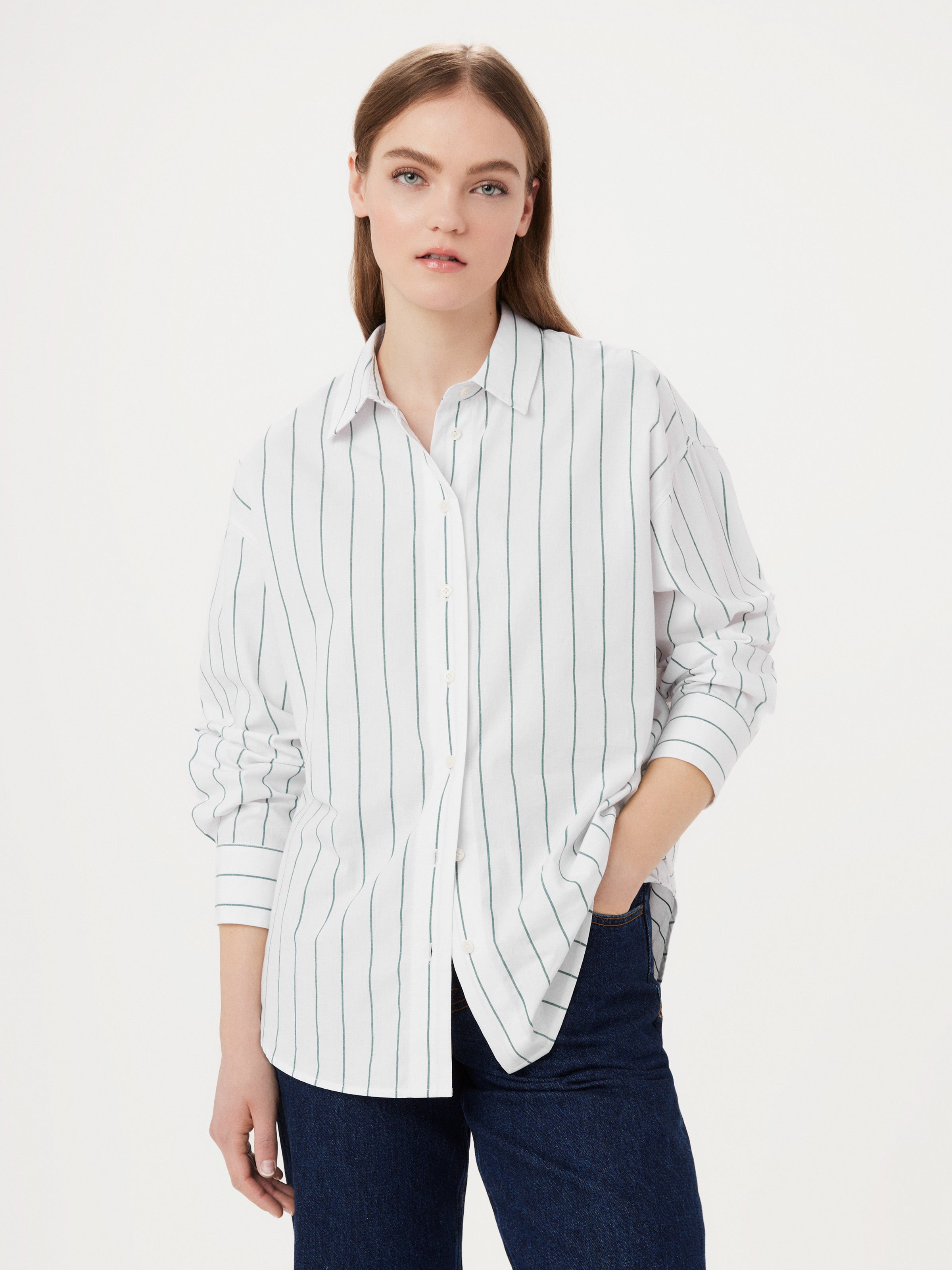 The Loose Striped Kapok Shirt in Dark Green