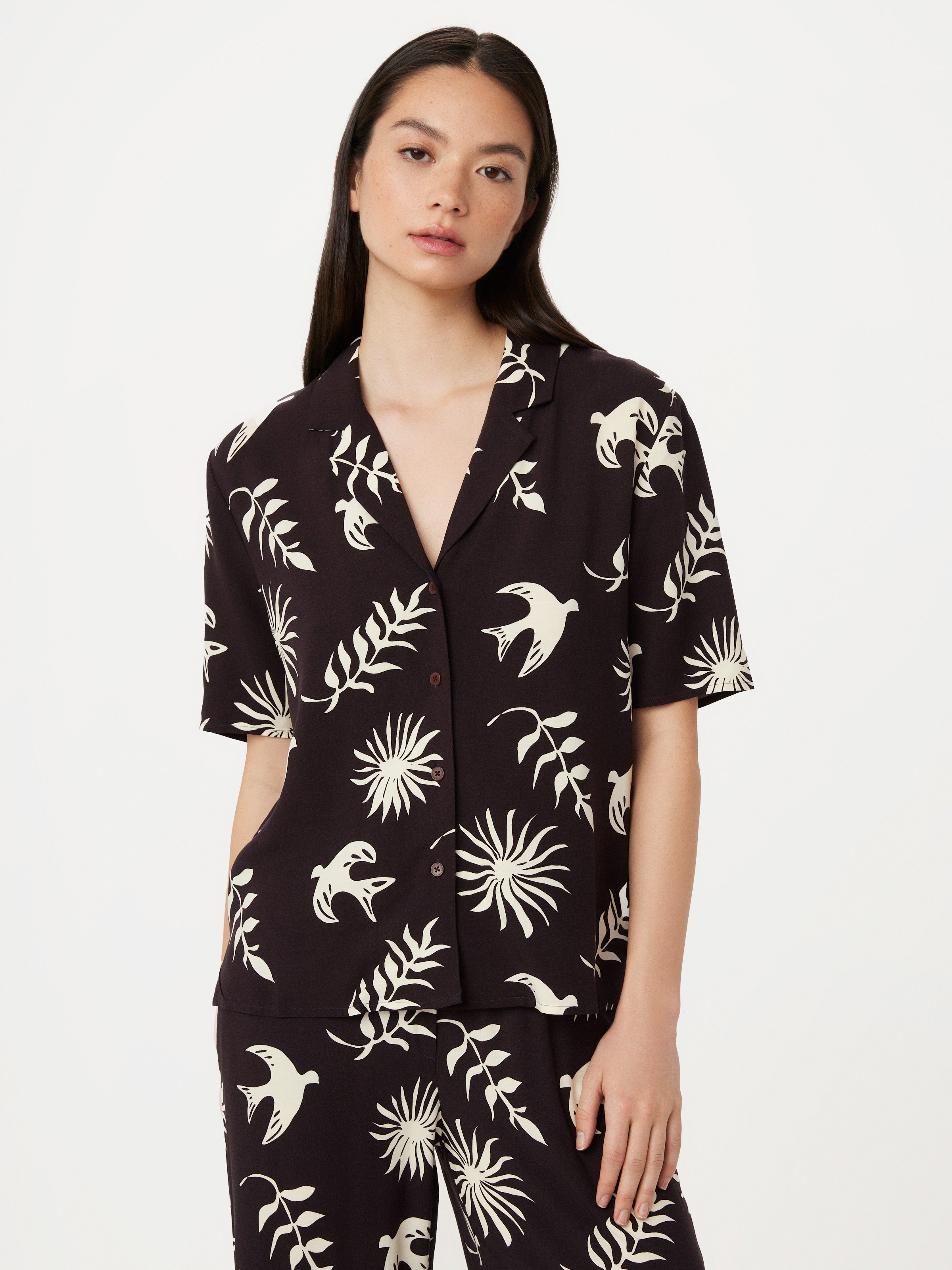 The Printed Camp Collar Blouse in Mahogany