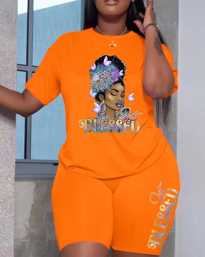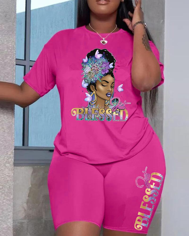 Plus Size Stay Humble Hustle Hard Print Top & Capris Pants Set