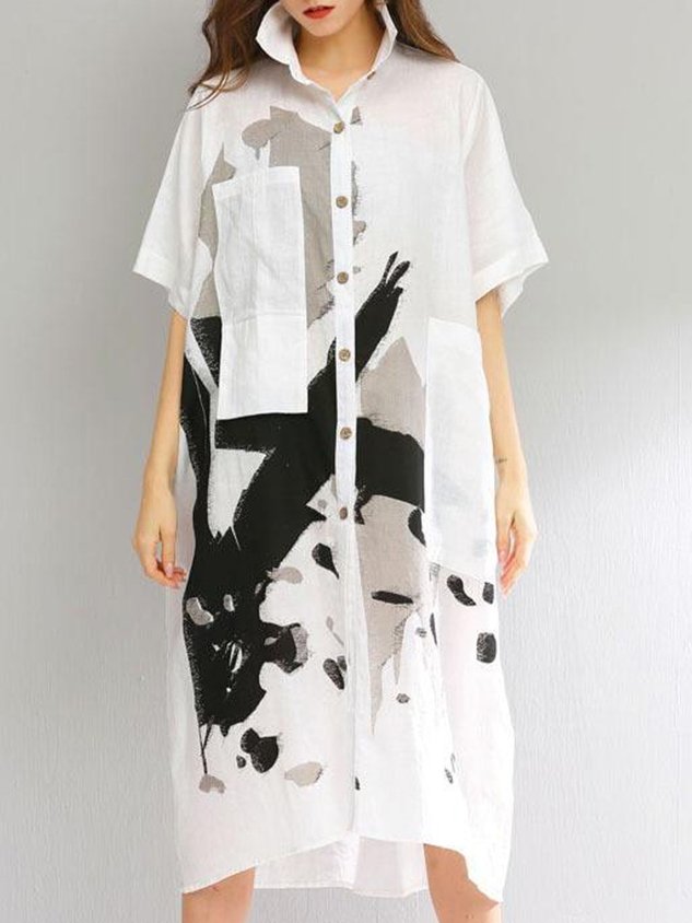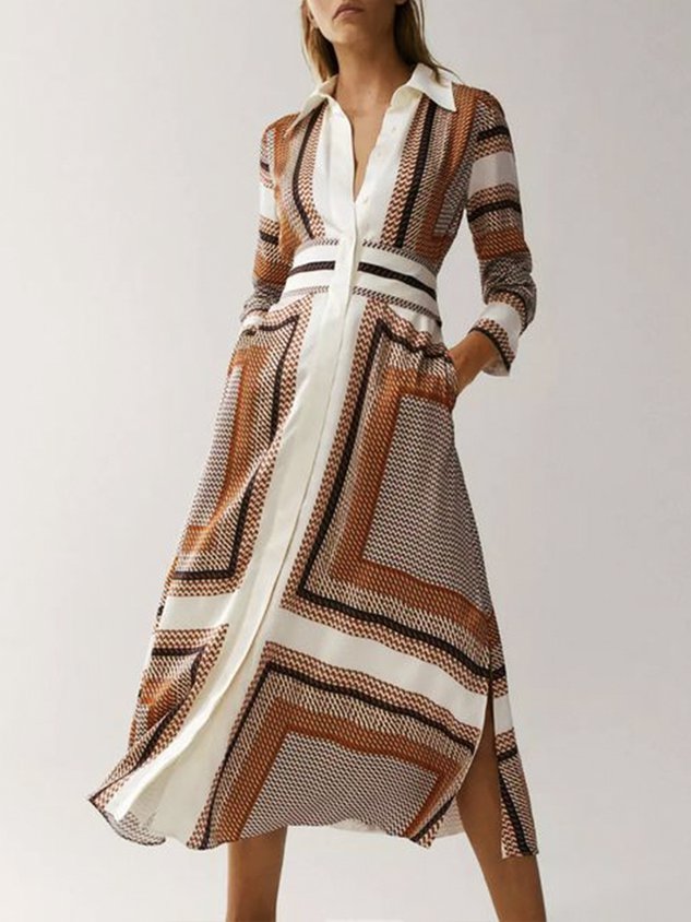 Geometric Loose Shirt Collar Simple Dress