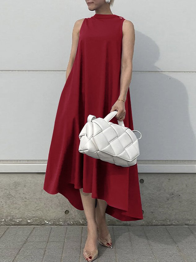 Long sleeve Elegant Plain Regular Fit Stand Collar Dress