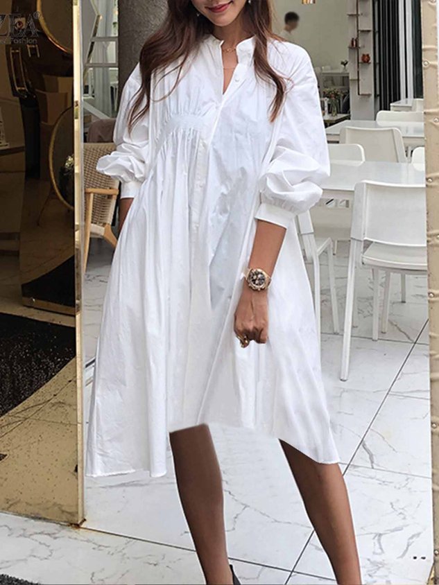 Plain Shirt Collar Loose Simple Dress