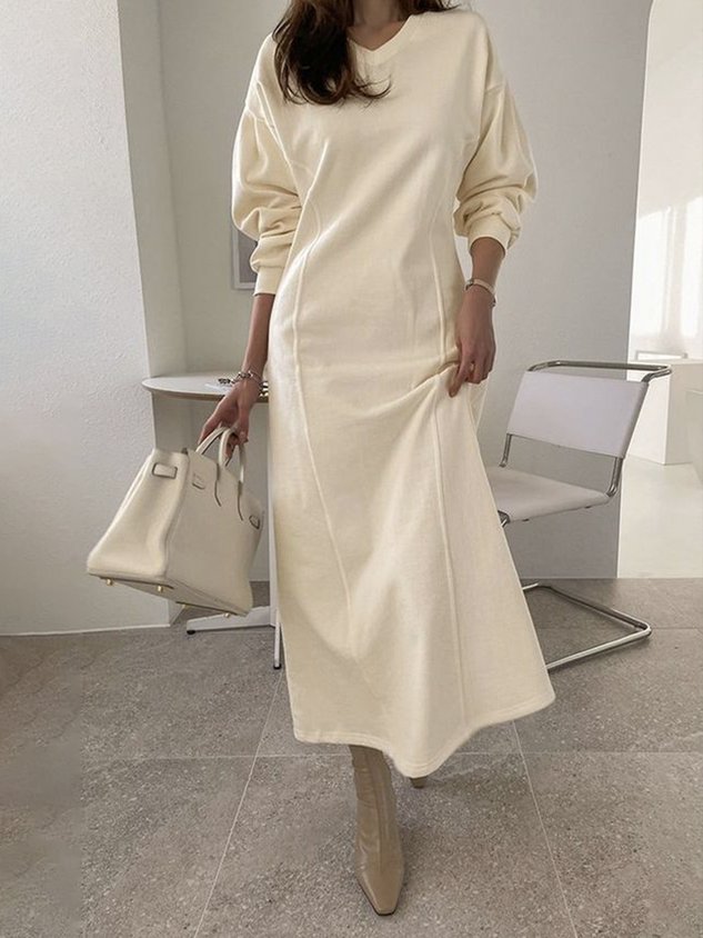 Long sleeve Plain Regular Fit Others Elegant Dress