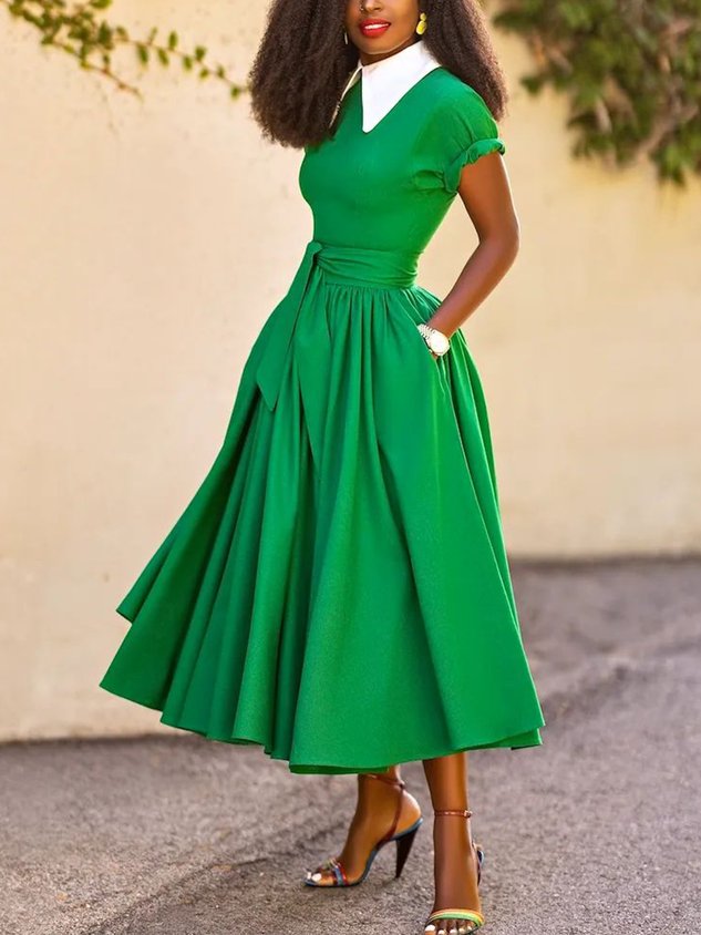 Shirt Collar Loosen Statement Short Sleeve Woven Dress