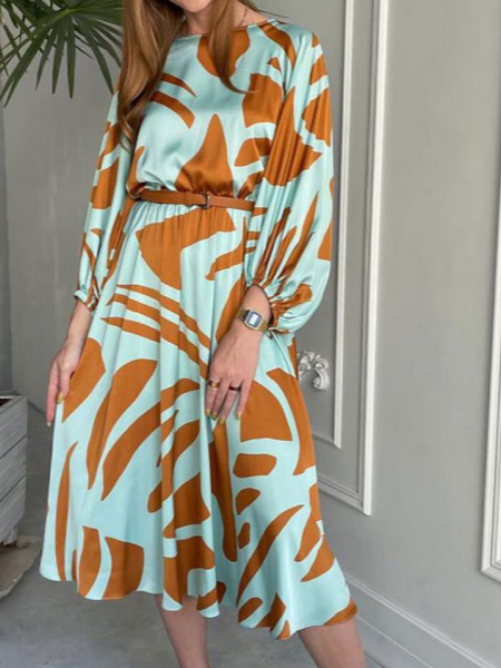 Abstract Stripes Crew Neck Loose Vacation Dress