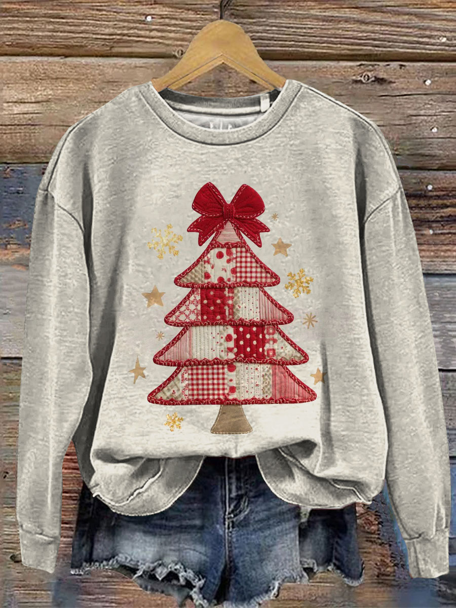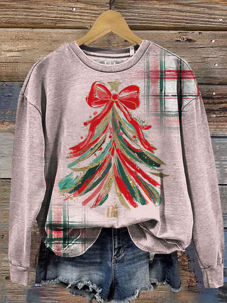 Christmas Tree Print Casual Cotton Sweatshirt