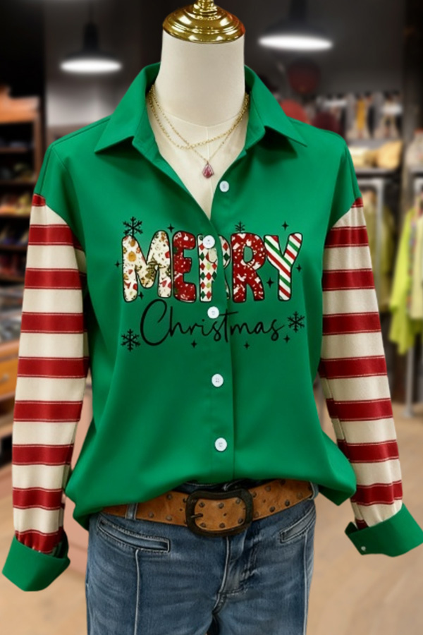 Merry Christmas Striped Long Sleeve Blouse