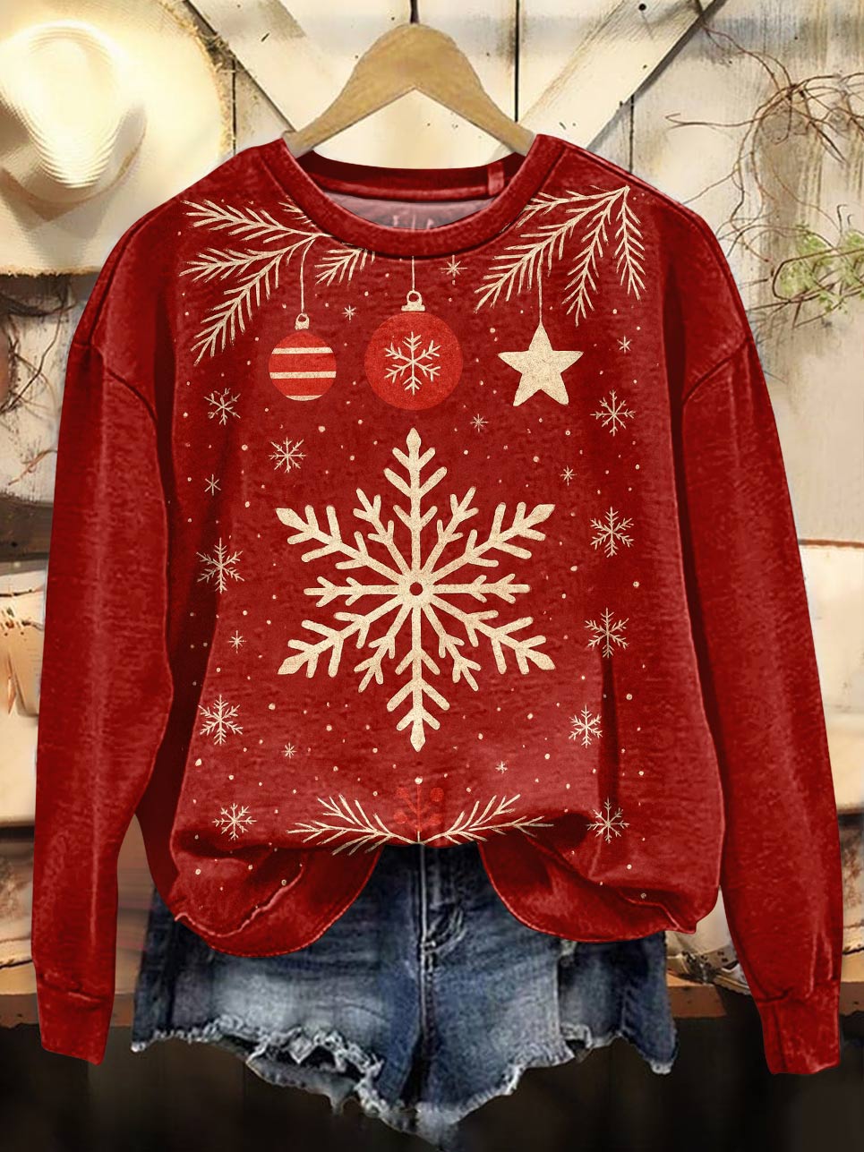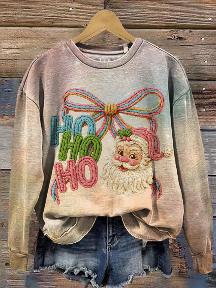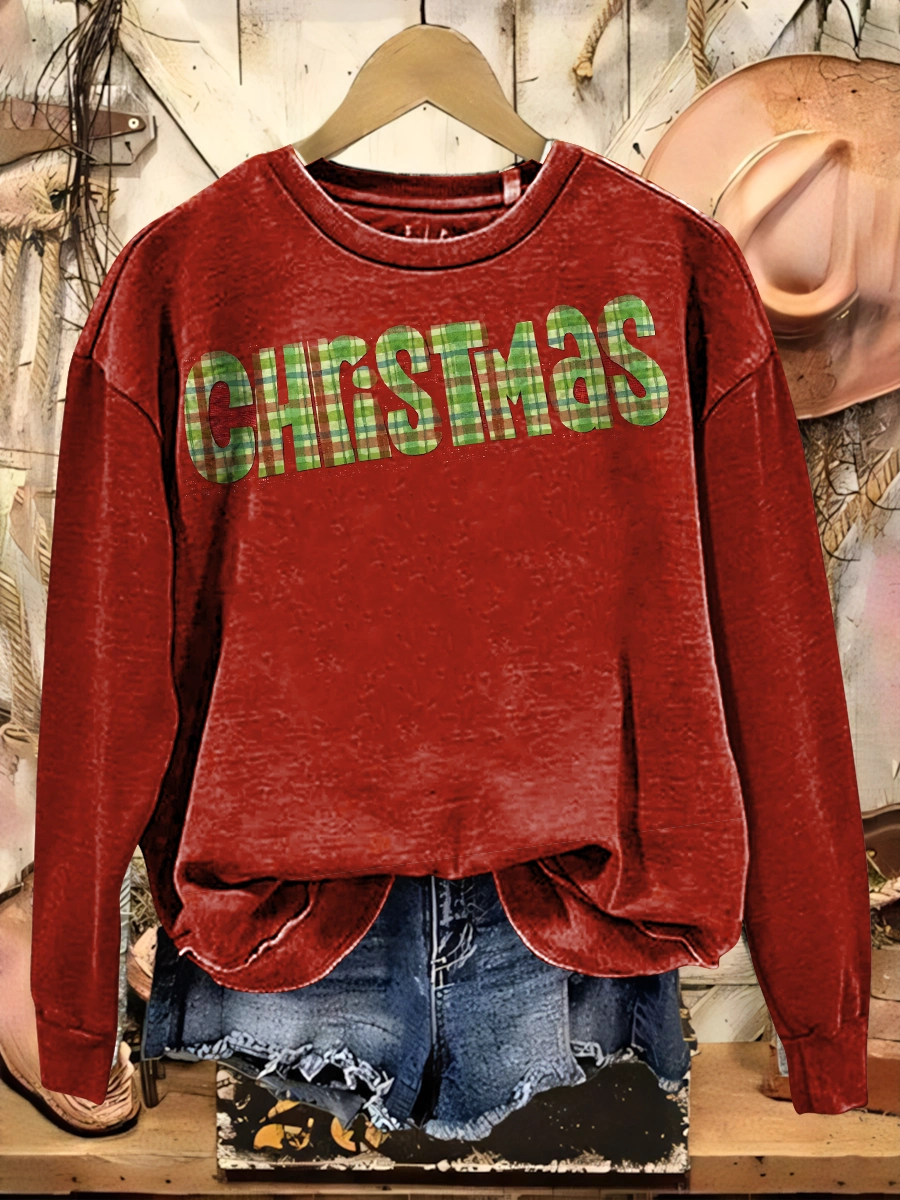 Vintage Christmas Pattern Casual Cotton Sweatshirt