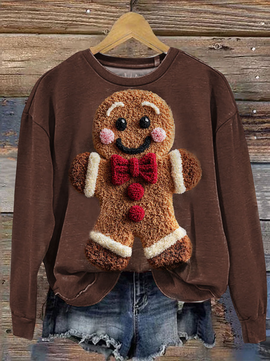 Vintage Cute Christmas Gingerbread Man Prints Casual Cotton Sweatshirt