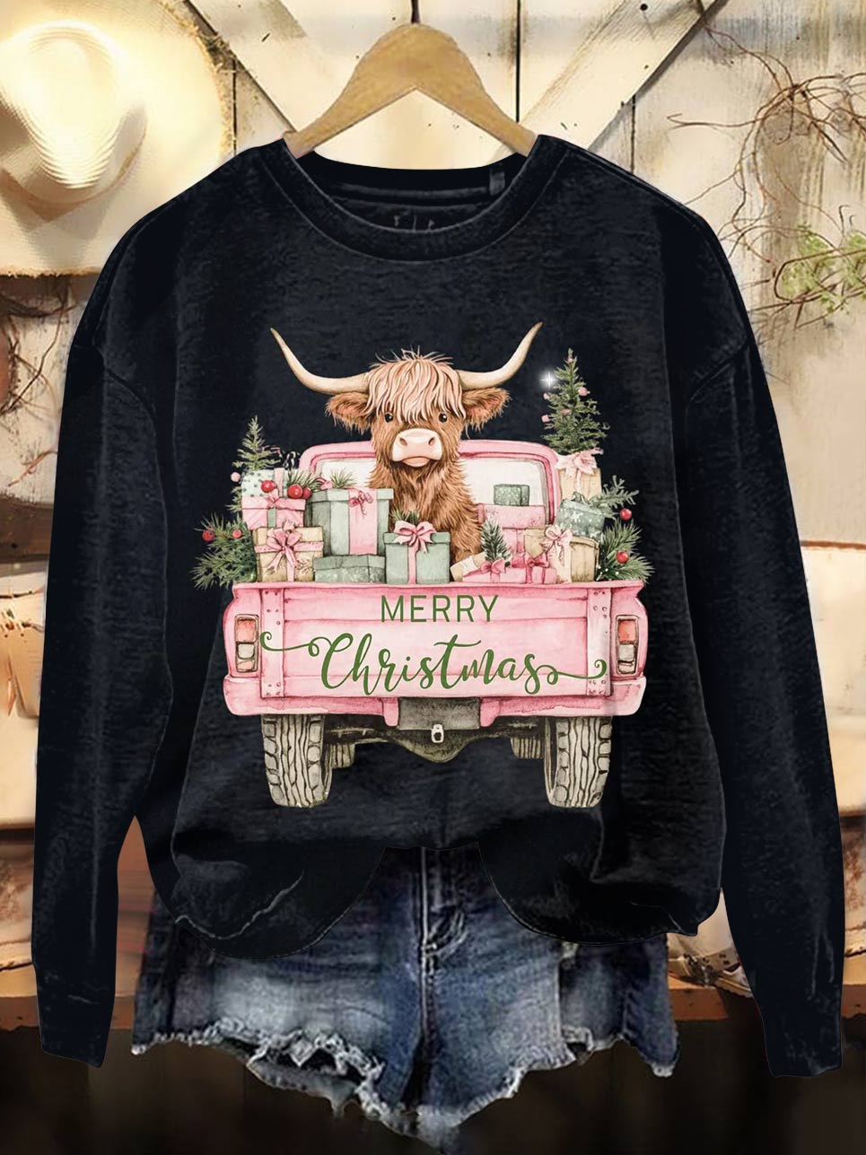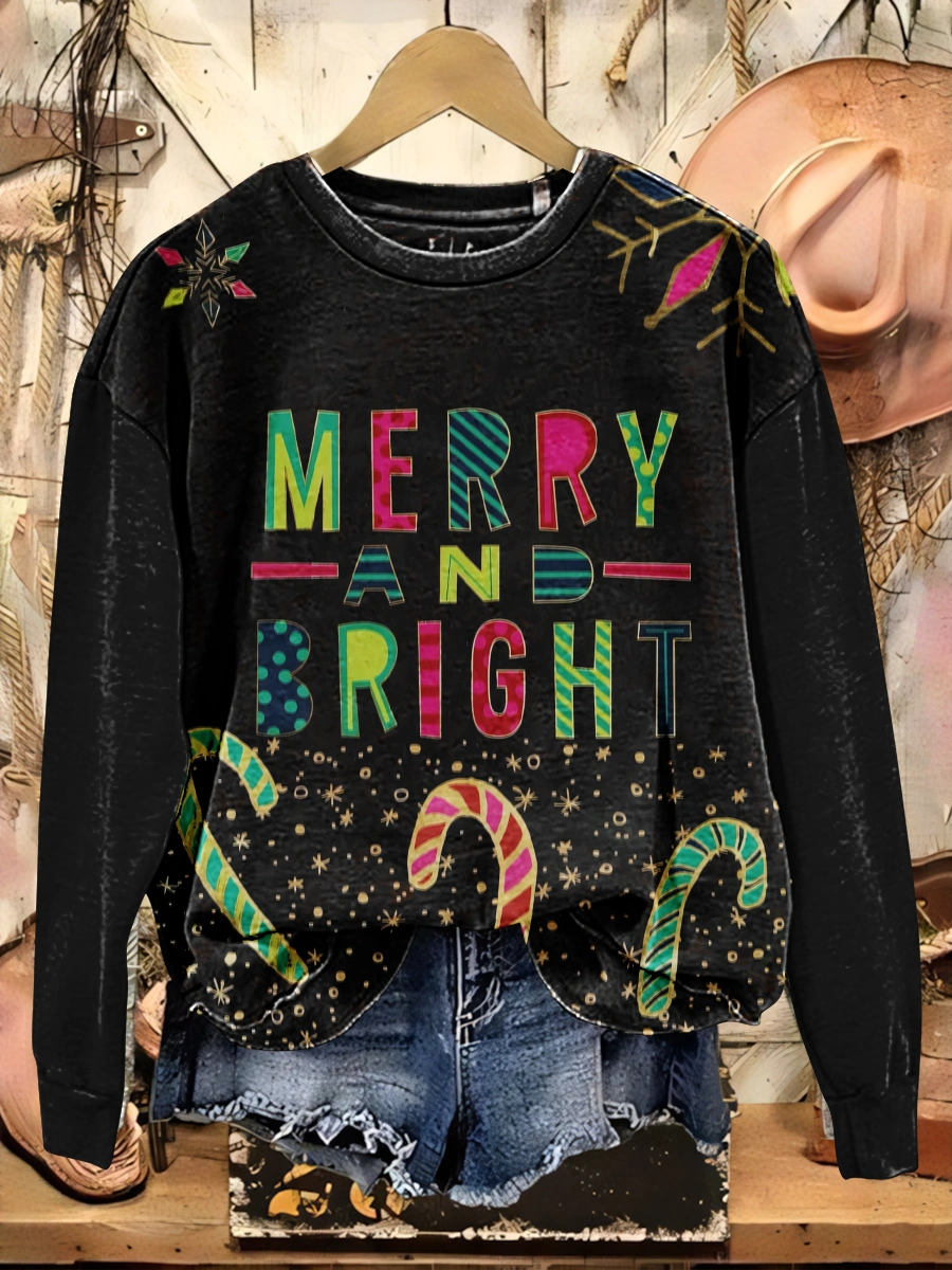 Merry Christmas West Print Casual Cotton Sweatshirt