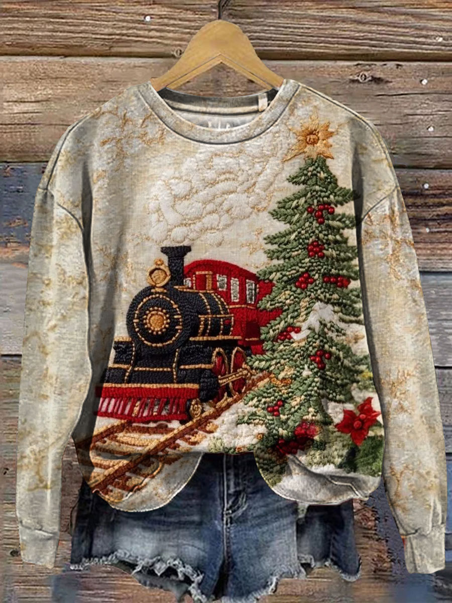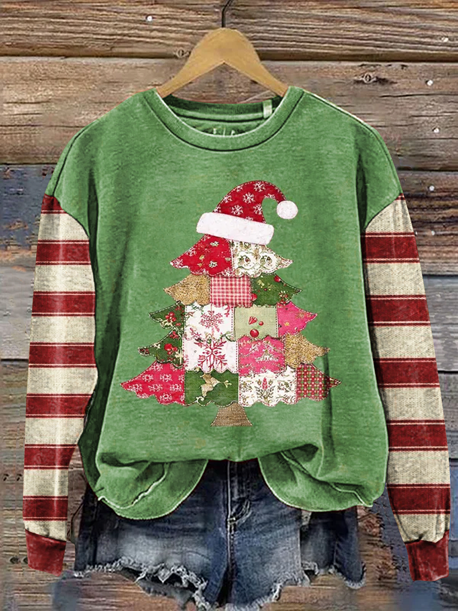 Vintage Christmas Tree Art Print Casual Cotton Sweatshirt