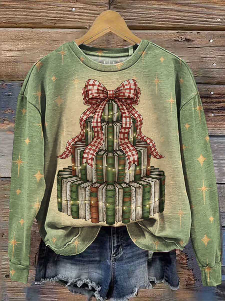 Vintage Books Christmas Art Prints Casual Cotton Sweatshirt