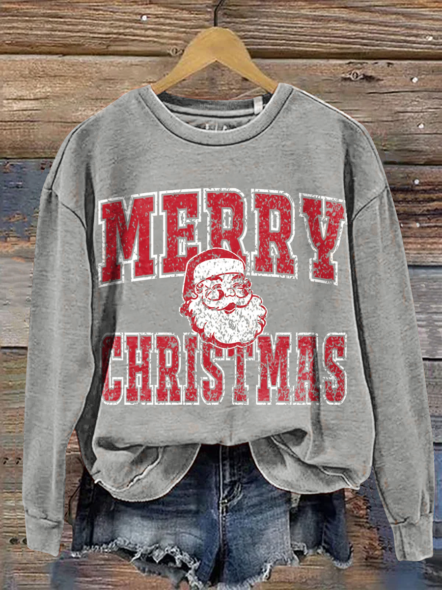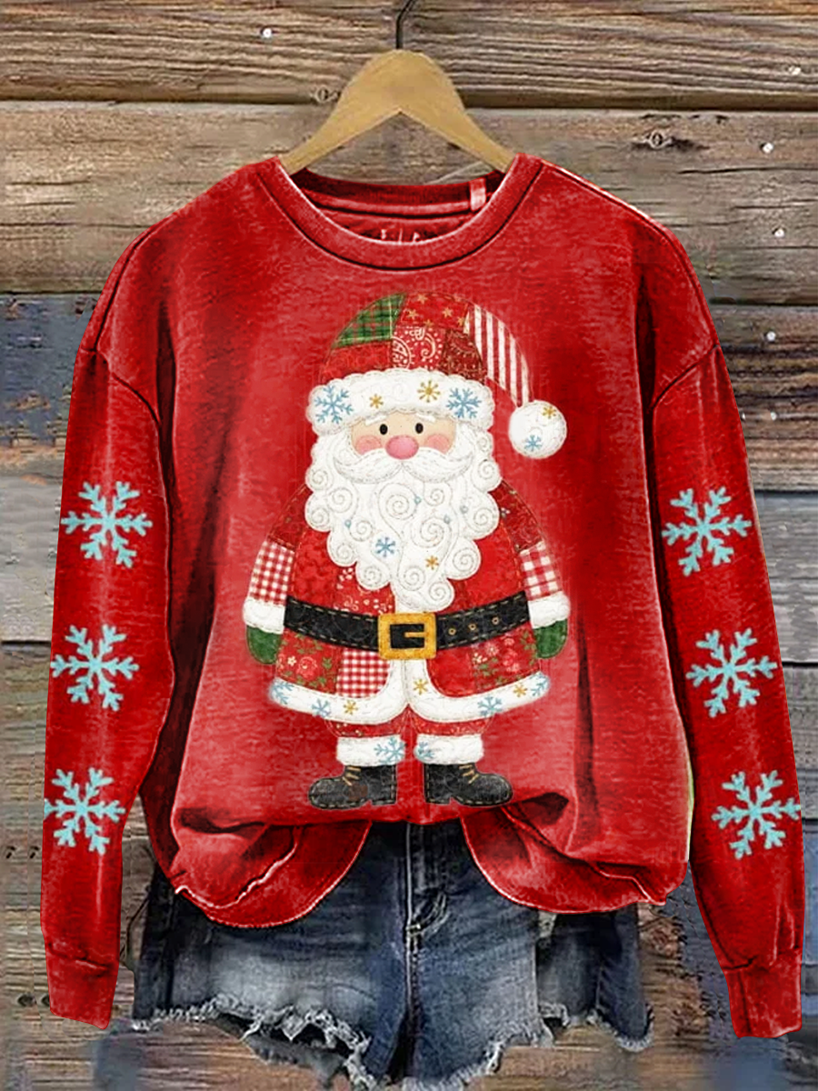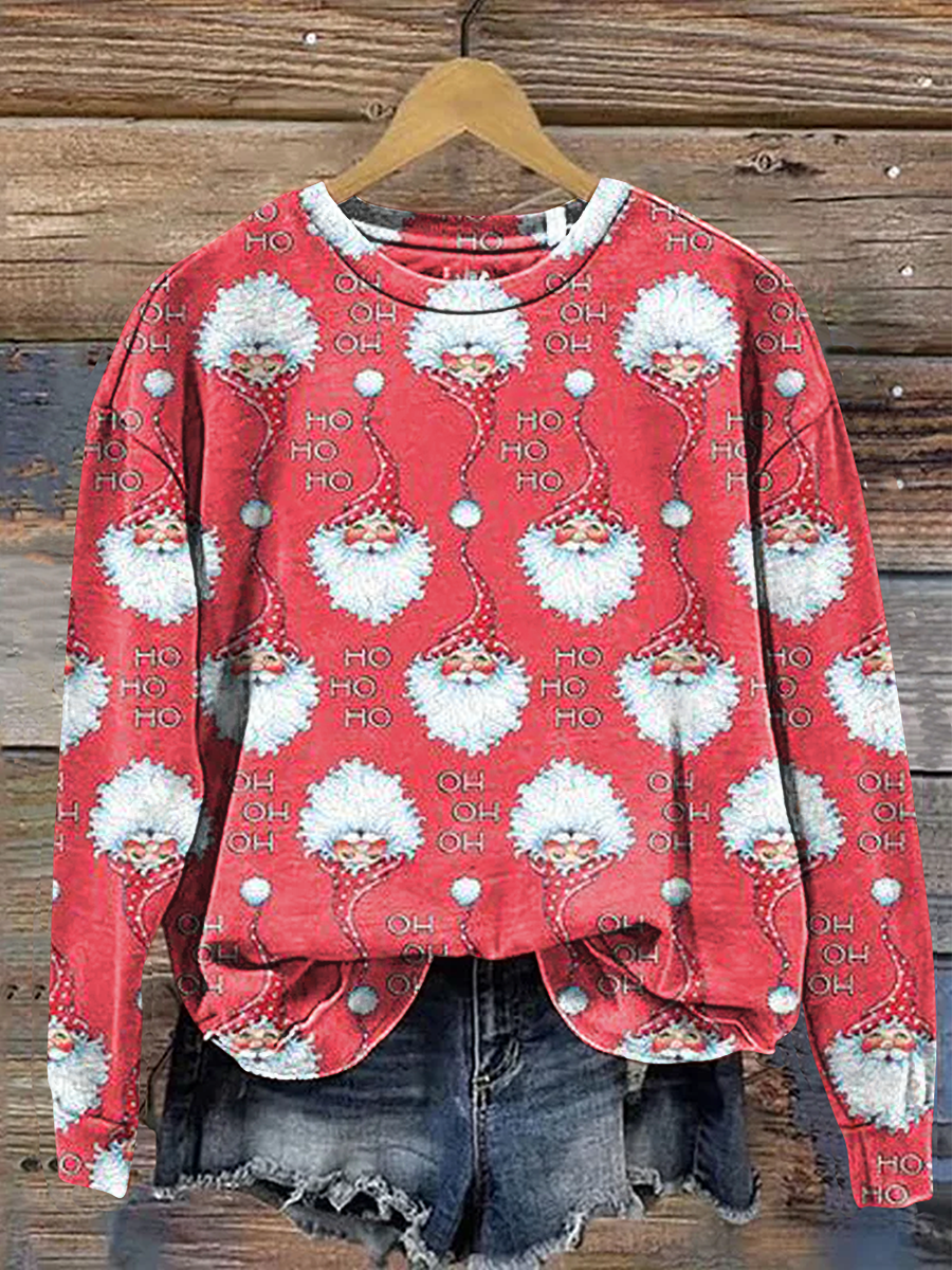 Vintage Santa Claus Art Print Casual Cotton Sweatshirt