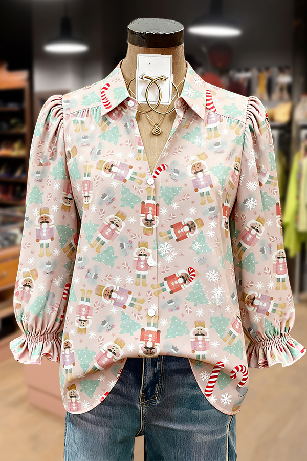 Christmas Ribbon Nutcracker Print Long Sleeve Top