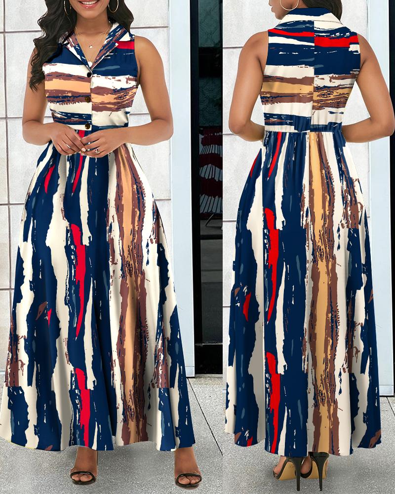 Multi-Color Abstract Print Buttoned Shirt Dress