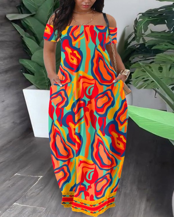 Multi-Color Abstract Print Hollow Out Casual Dress