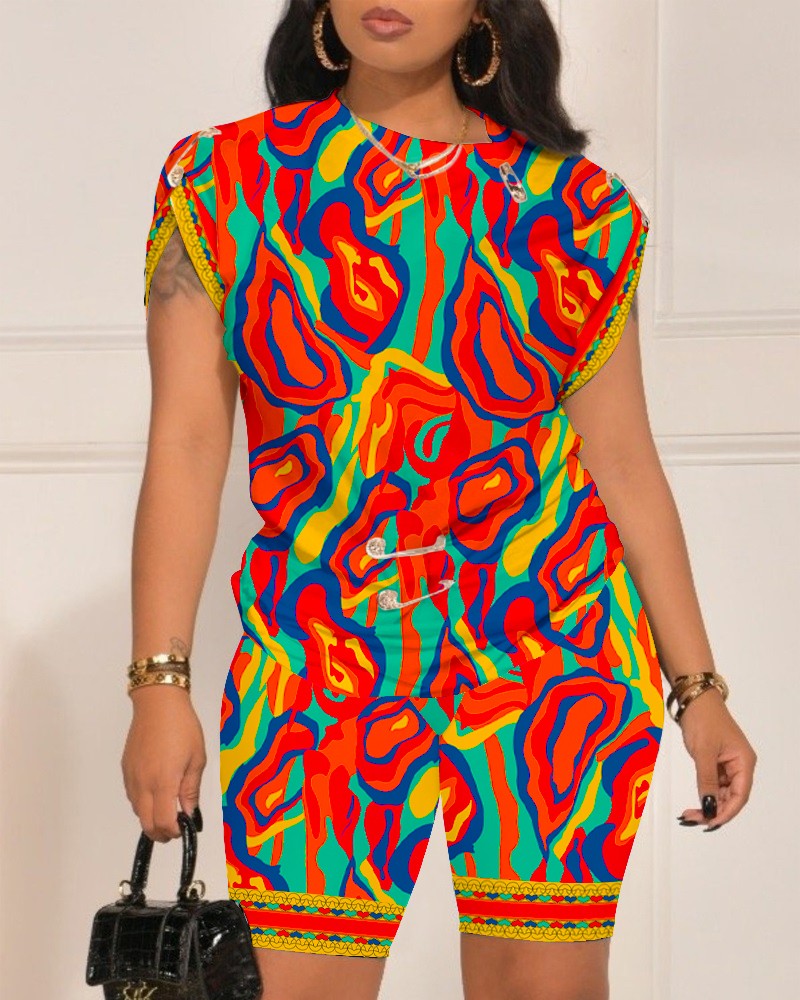 Plus Size Multi-Color Abstract Heart Print Top & Shorts Set