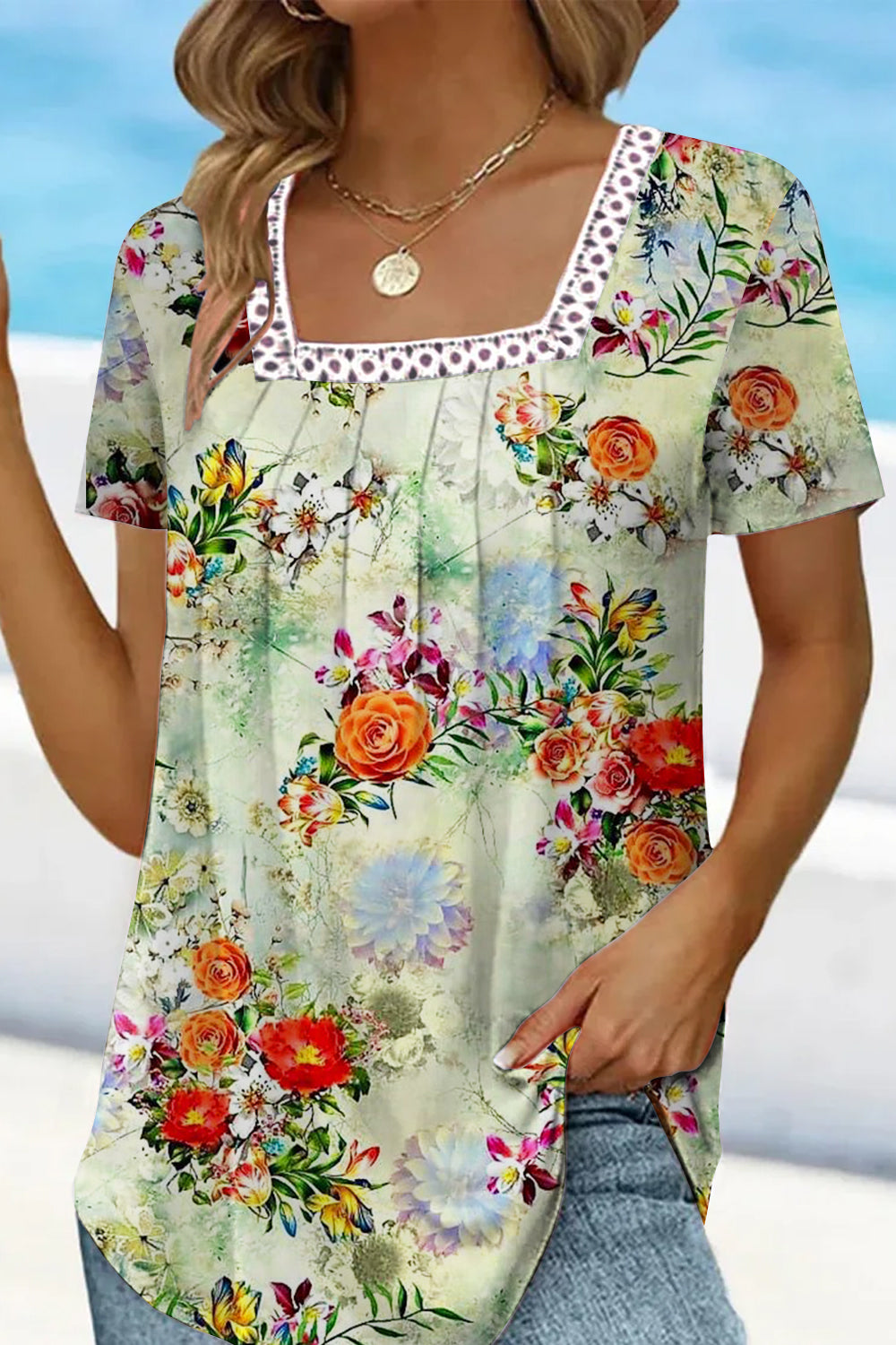 Women's Colorful Floral Lace Paneled T-shirt Top