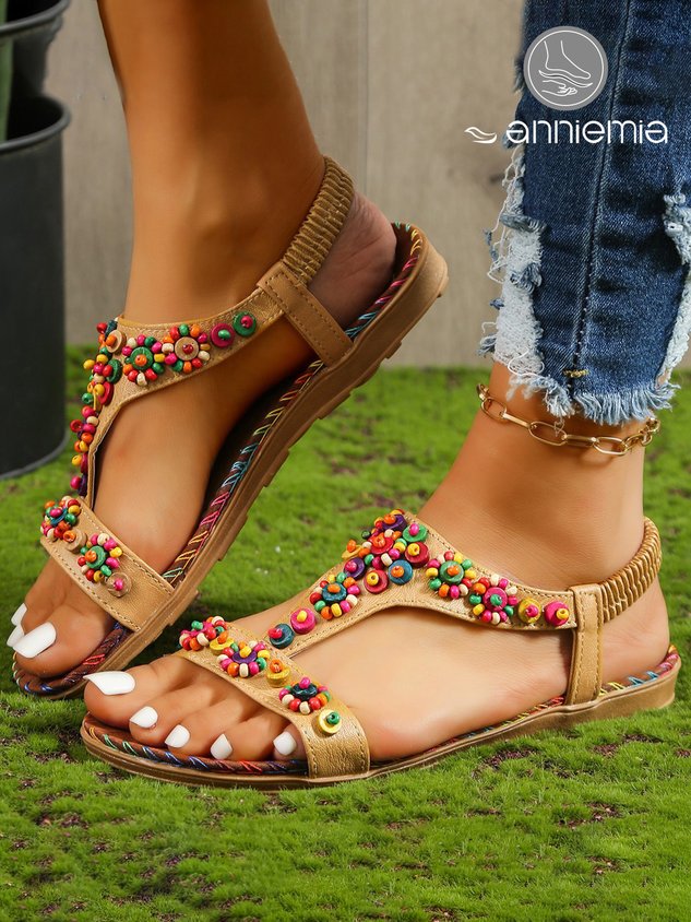 Printed Woven Rhinestone Bohemian Resort Sandals