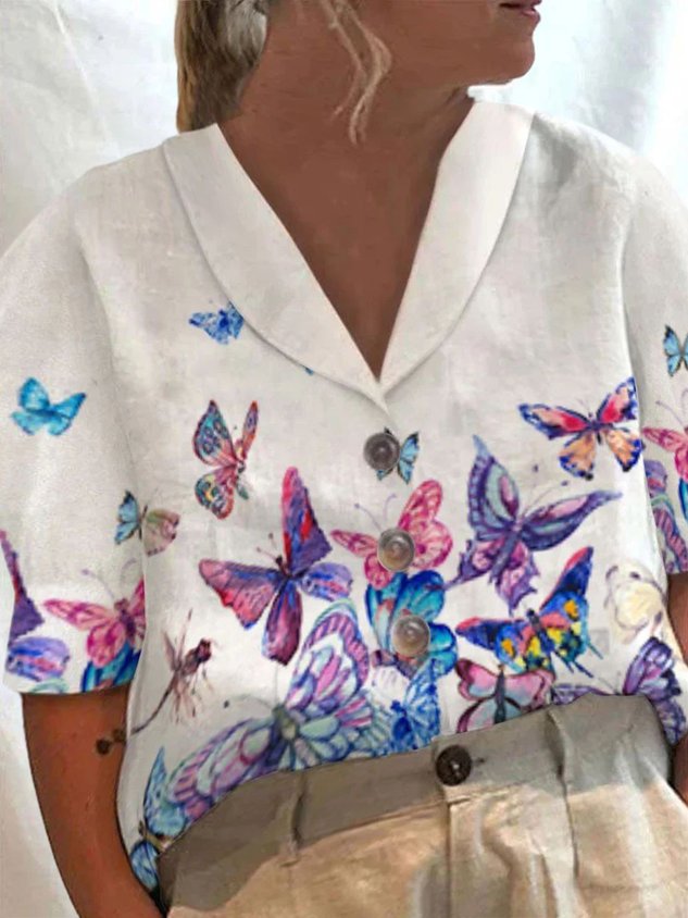 Plus Size Shirt Collar Casual Loose Butterfly Blouse