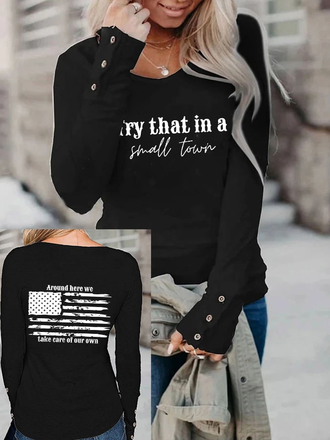 Women's Try That In A Small Town American Flag Long Sleeve T-Shirt
