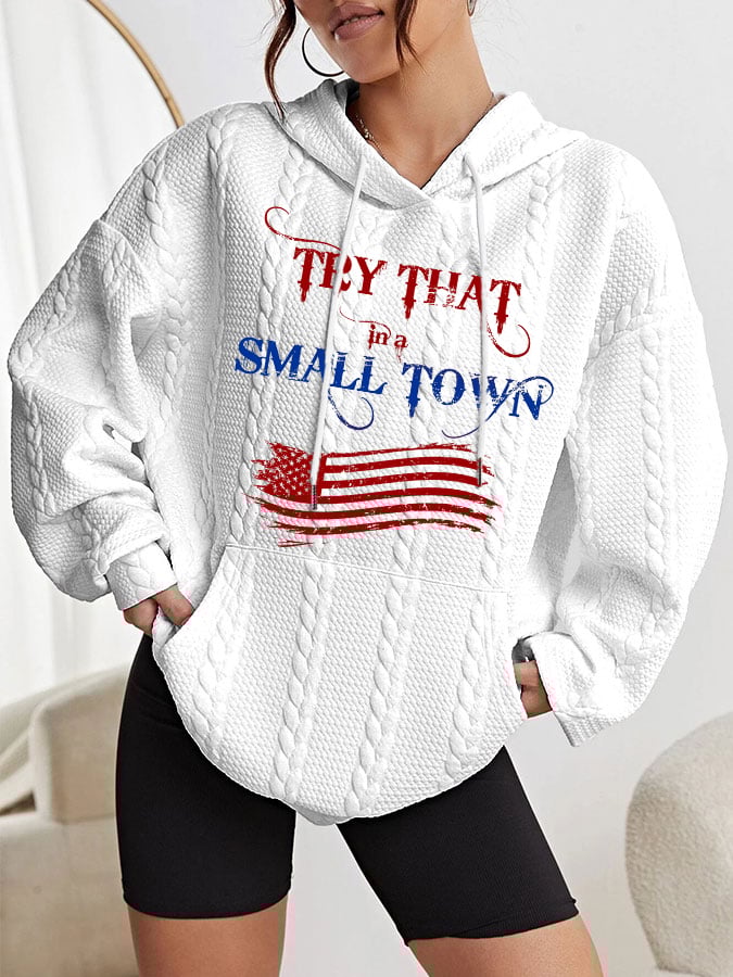 Women's Try That In A Small Town American Flag Print Hoodie