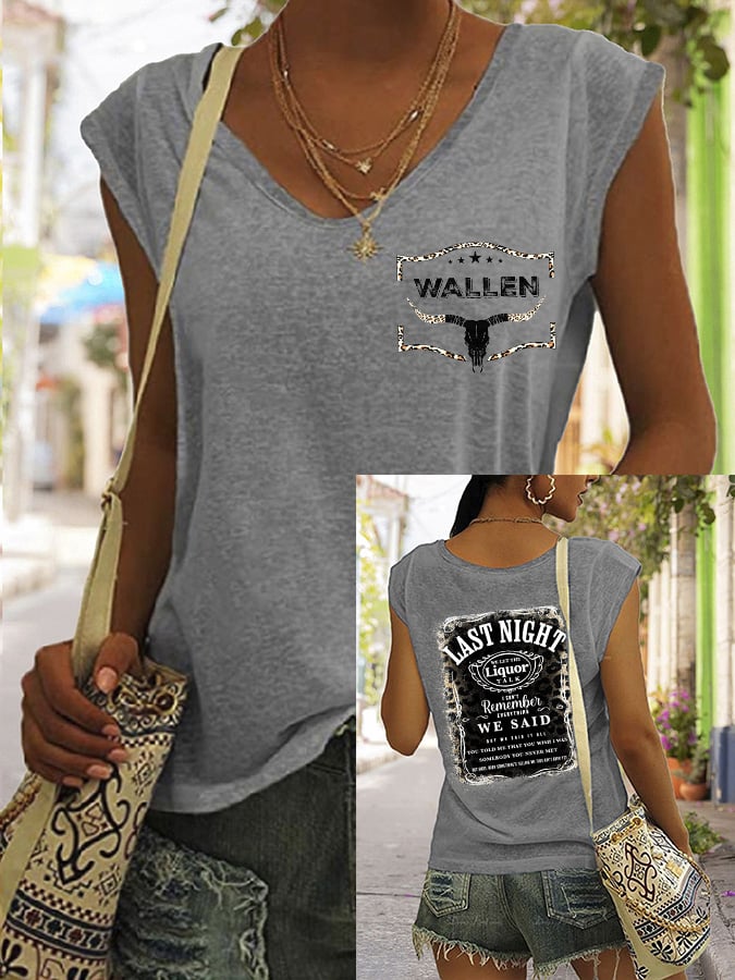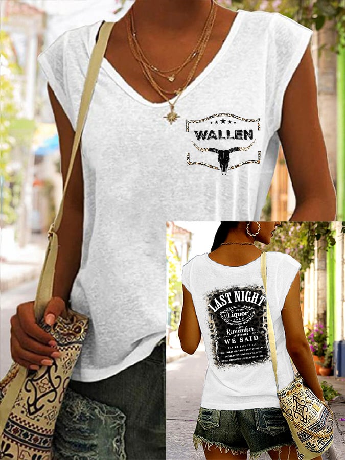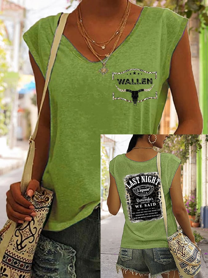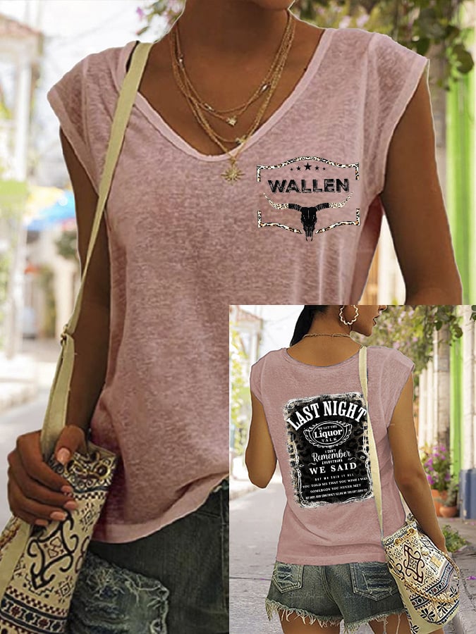 Women's Wallen Last Night we Let Liquor Talk Print V-Neck T-Shirt