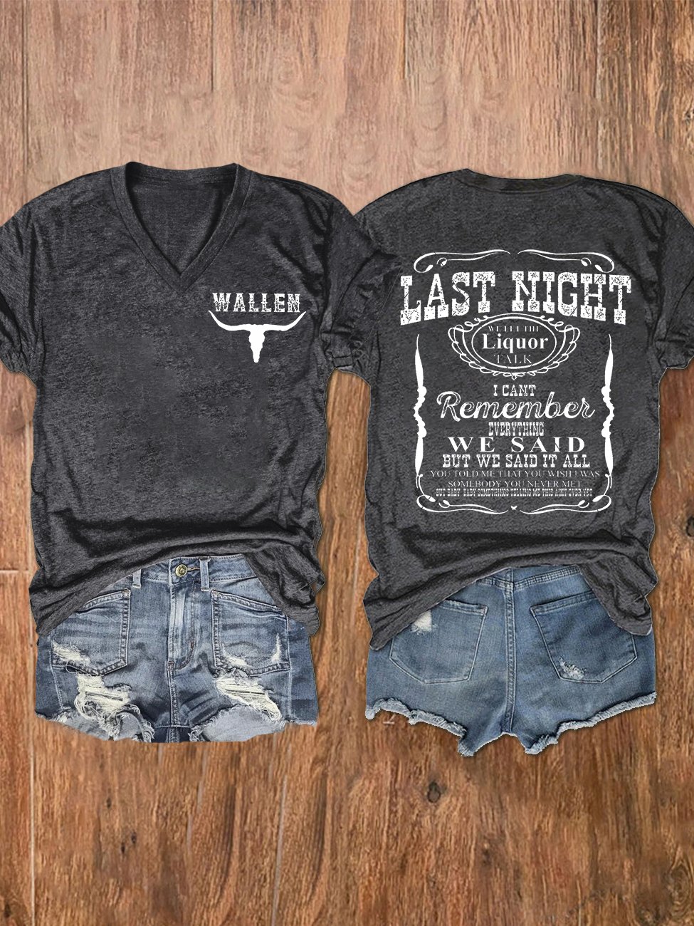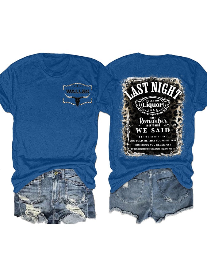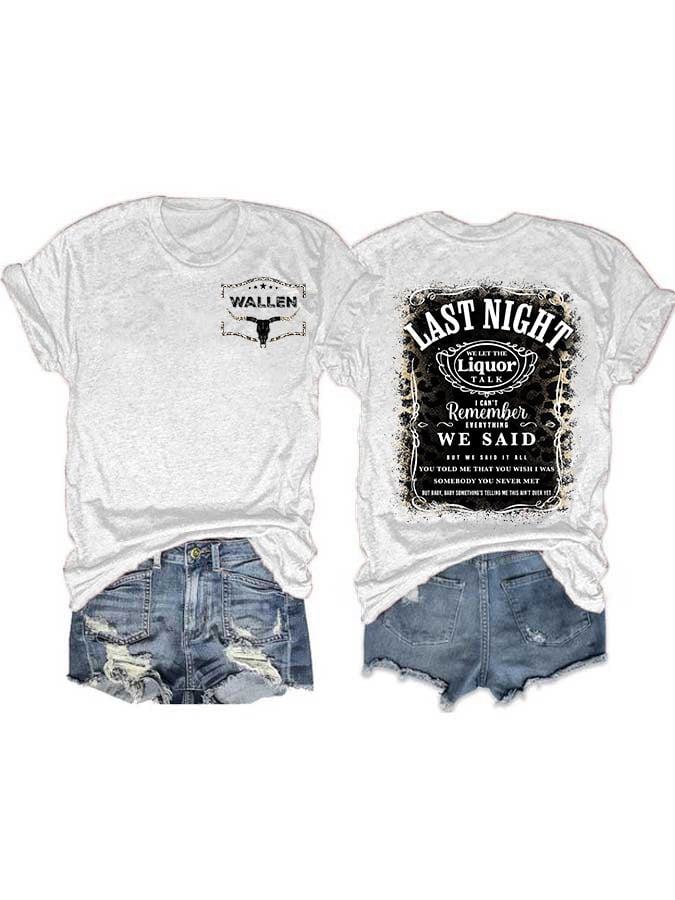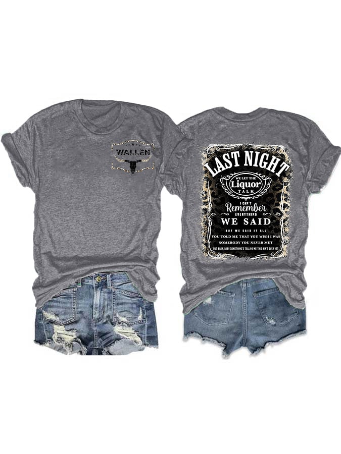 Women's Wallen Last Night We Let The Liquor Talk Print Crew Neck T-Shirt