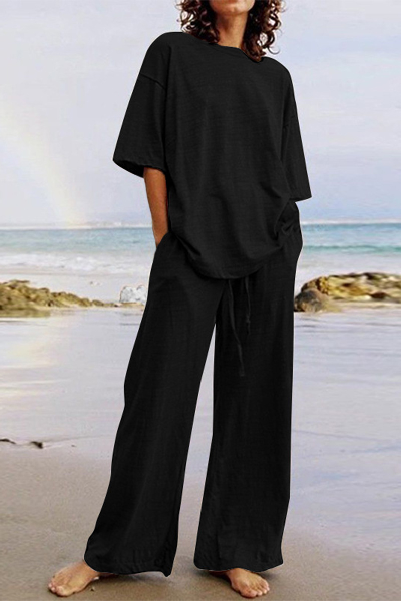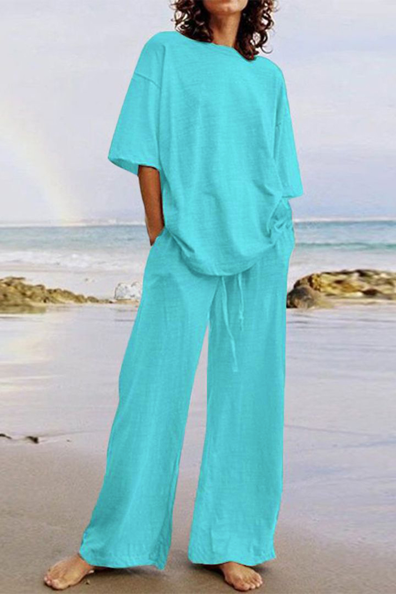 Solid Round Neck Top & Slant Pocket Pants Set