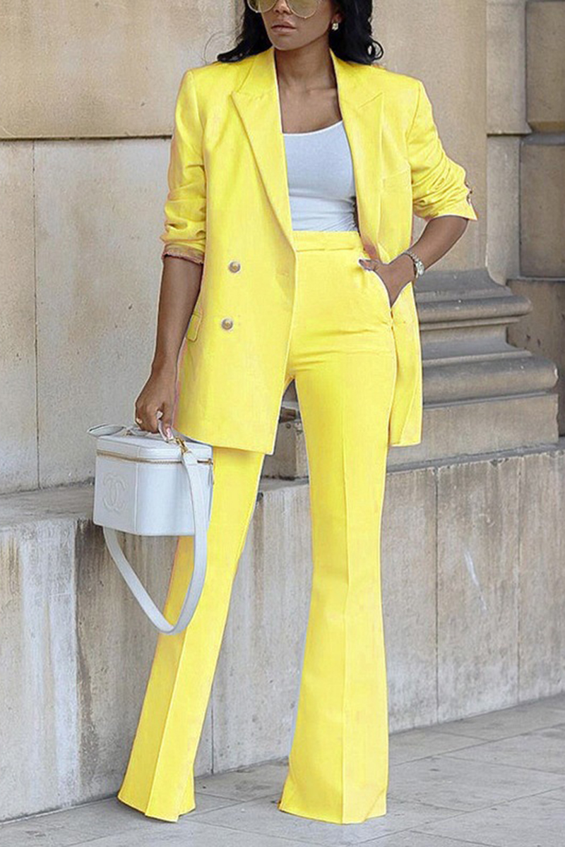 Solid Lapel Collar Flap Detail Blazer & Pants Set