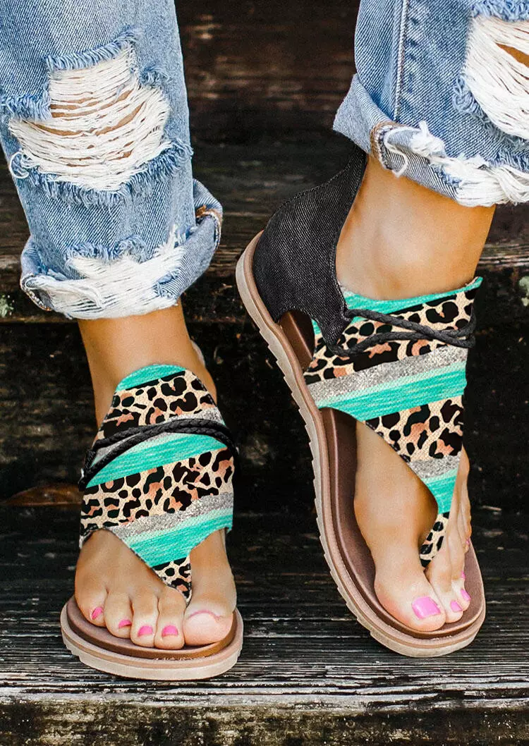 Leopard Striped Zipper Flat Sandals