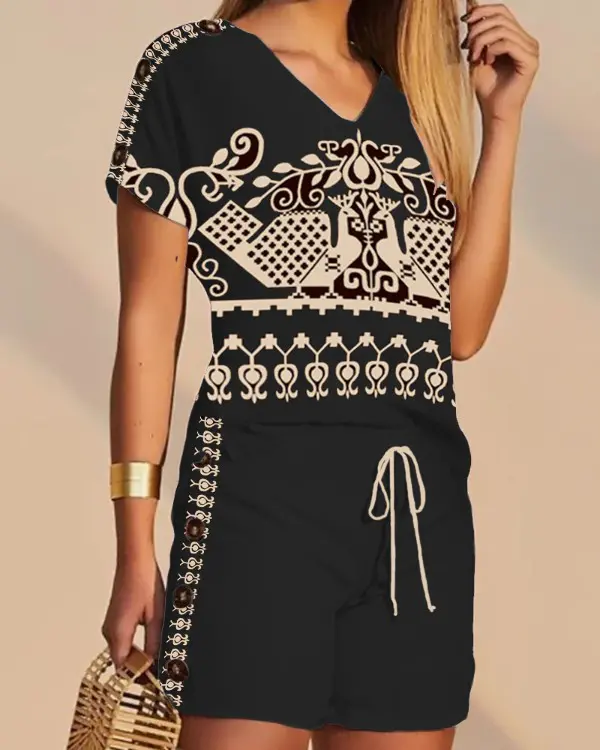 Tribal Print Top & Drawstring Shorts Set