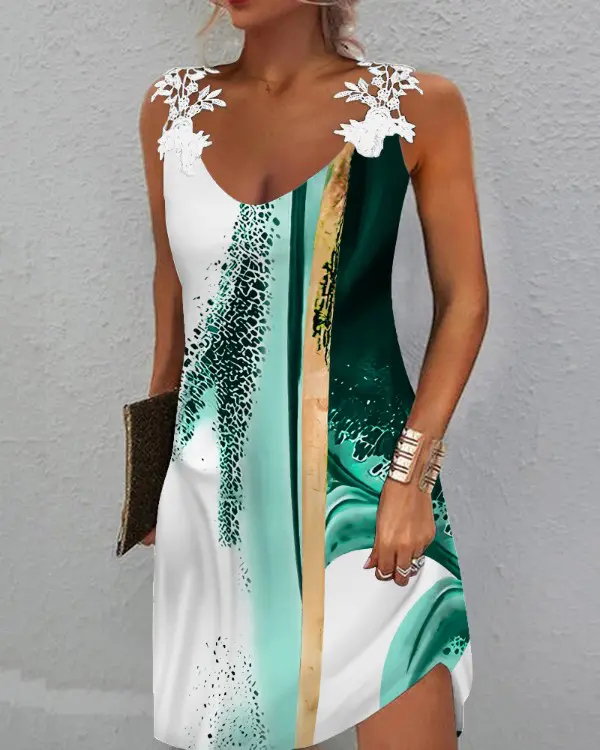 Tie Dye Lace Patch Sleeveless Casual Dress